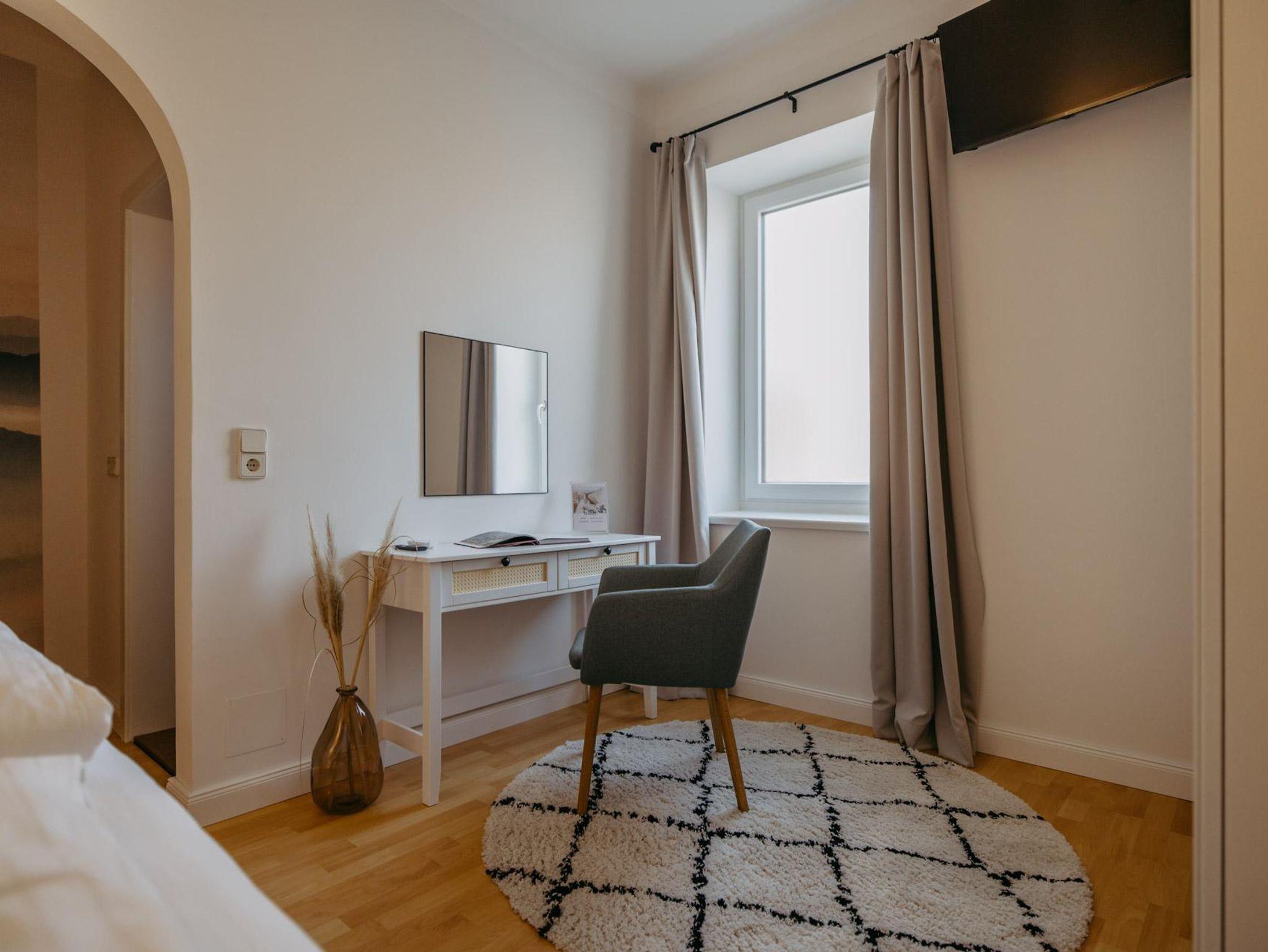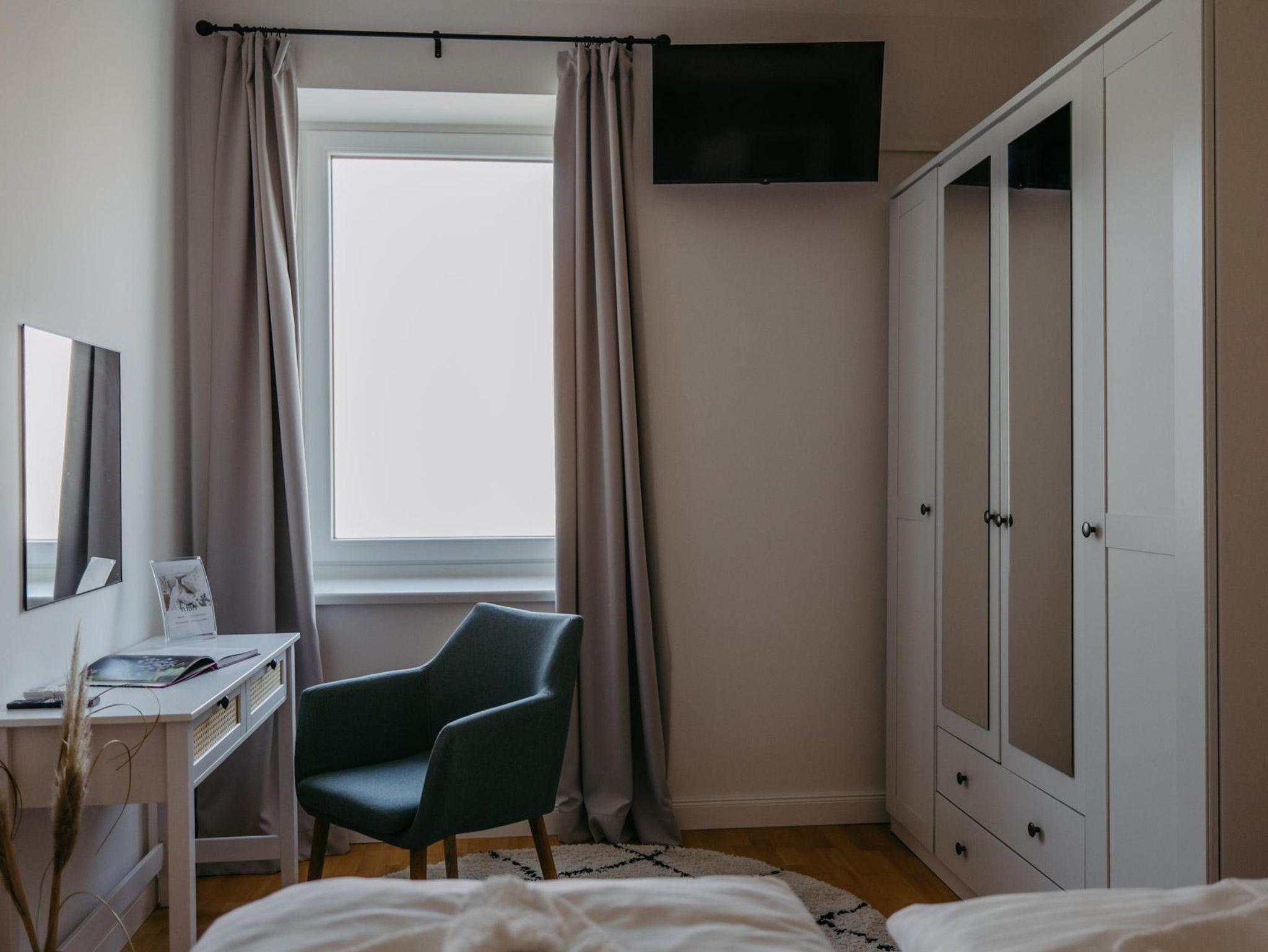 Unsere neu renovierten Apartments führen Sie mit Ihrem schlichten Design und den hellen Möbeln mit gut positionierten Farbtupfern in einen Urlaub voll Ruhe, Harmonie und Gelassenheit. In unseren voll ausgestatteten Wohnungen soll es Ihnen an nichts fehlen. Von der Kaffeemaschine, zum Toaster bis hin zu einer Klimaanlage für warme Nächte, einem Flatscreen TV und kostenlosem WLAN umfasst unser 80 m2 großes Pannonia Apartment reichlich Platz zu zweit, mit Freunden oder Ihrer Familie. 3 Zimmern, Schlafzimmer, inkl. gemütlichem Boxspringbett, Wohnzimmer mit 2 ausziehbaren Schlafsofas, 2 getrennte Bäder und eine geräumige Küche mit Essbereich sorgen für einen Urlaub ganz privat und unter sich. Bettwäsche und Handtücher inklusive.
