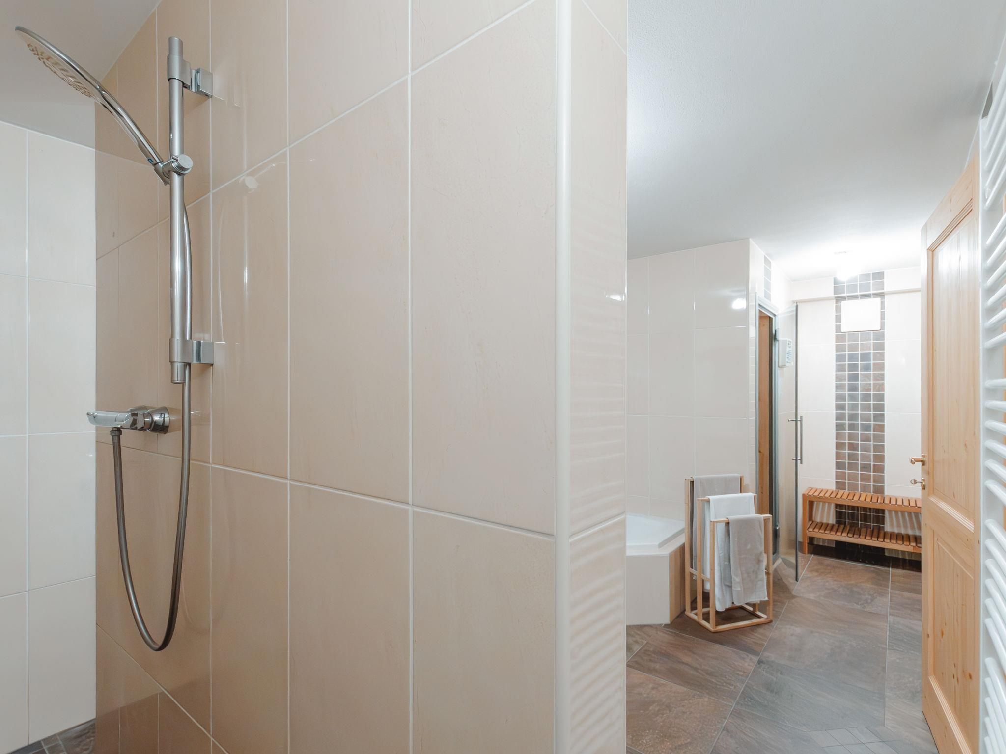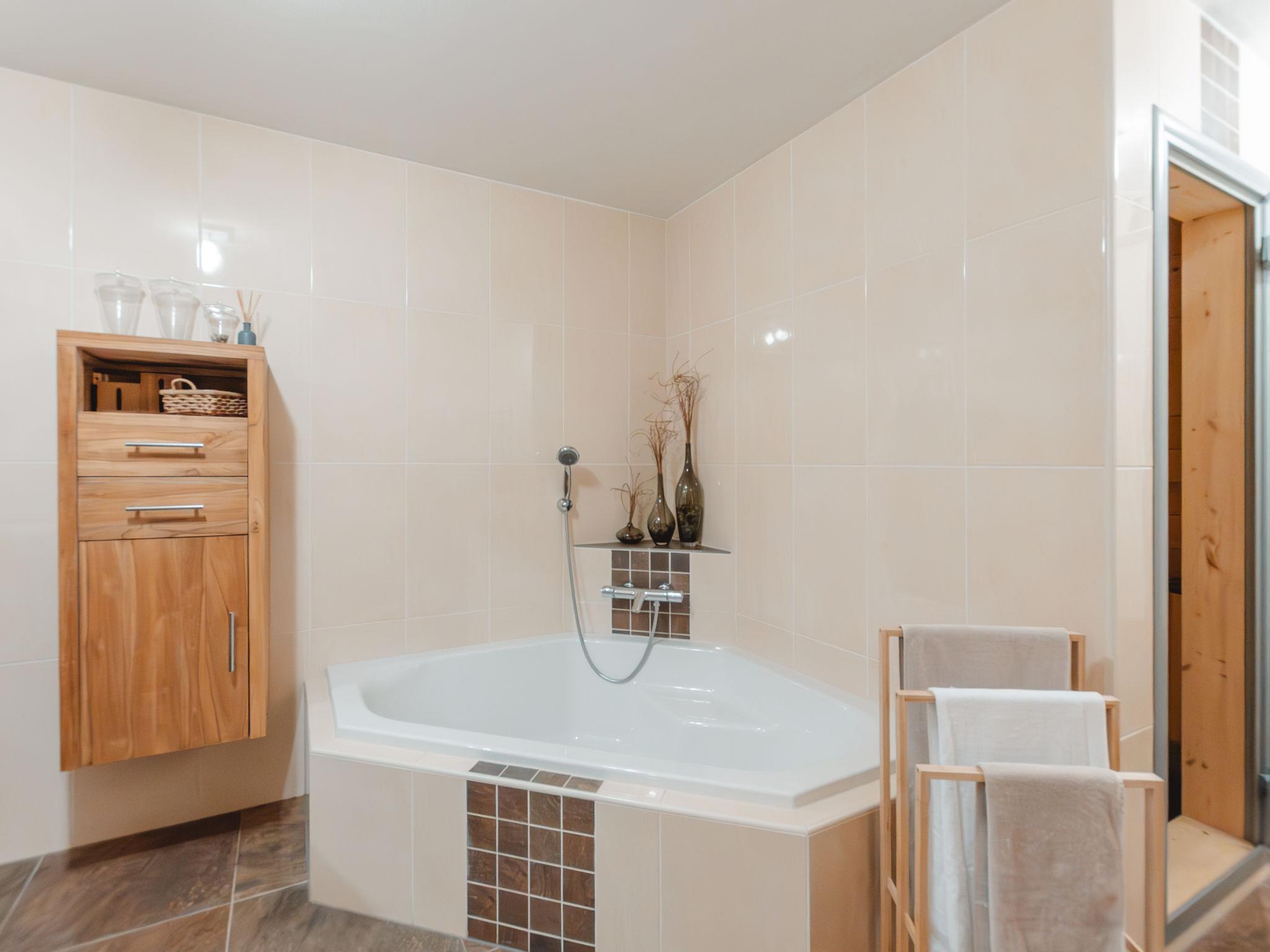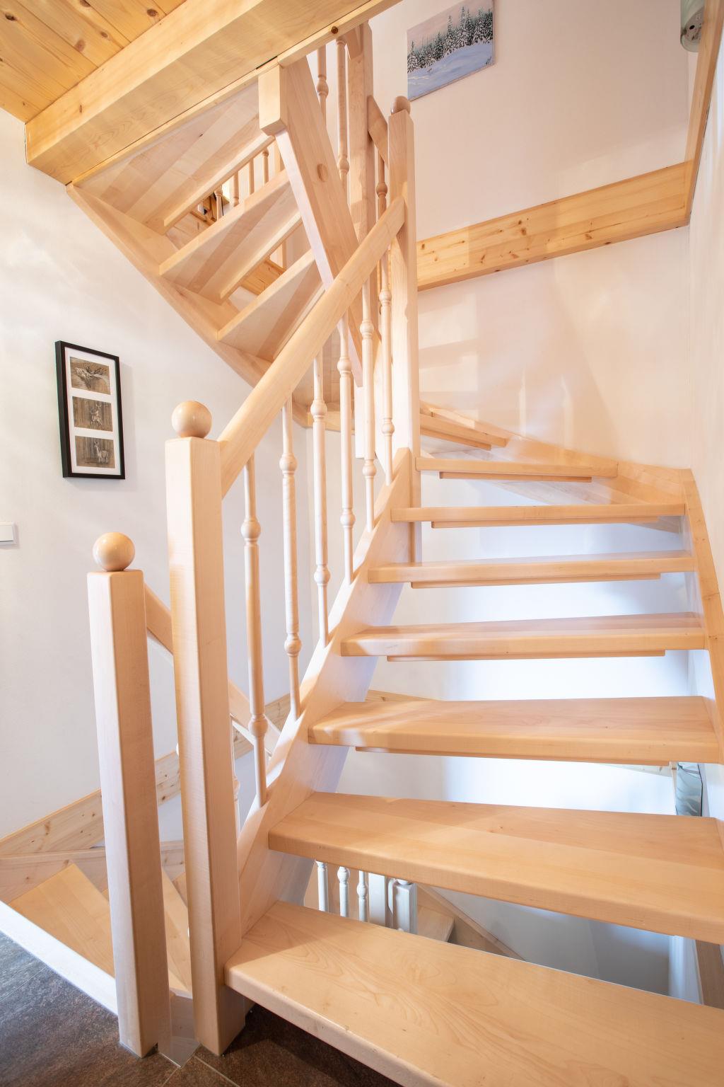 4-room semi-detached house 140 m2, south facing position. Bright, comfortable and tasteful furnishings: entrance hall. Living/dining room with open-hearth fireplace and satellite TV (flat screen). Exit to the balcony. Open kitchen (oven, dishwasher, 4 ceramic glass hob hotplates, microwave, freezer, electric coffee machine, Capsules for coffee machine (Nespresso) extra). Sep. WC. On the lower ground floor: 1 double bedroom. 1 double bedroom. Exit to the garden, to the terrace. Bath/shower, sep. WC, double hand-basin, Sauna. Top floor: open large gallery with sloping ceilings with 2 beds (100 cm, length 200 cm). Large balcony, terrace. Terrace furniture. Beautiful view of the countryside and the forest. Facilities: Internet (WiFi, free). Please note: non-smoking house. Smoke alarm. Instead of an enclosed bedroom, some sleeping areas are located in an open-plan area (gallery, alcove, etc.). 50607-990160-2020
