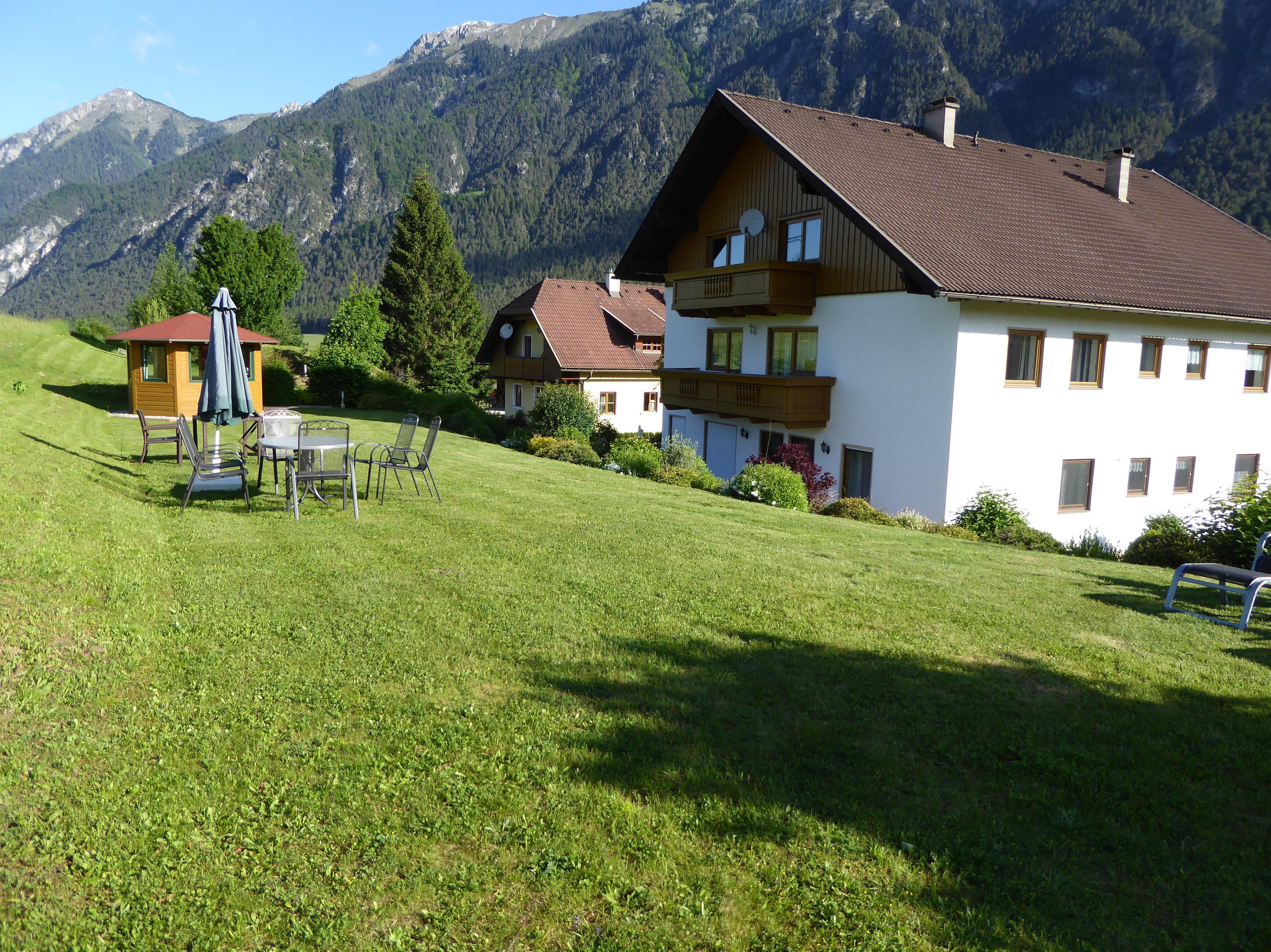 Eine Liegewiese mit Liegestühle zum entspannen die Terrasse zum feiern können wir Ihnen anbieten.