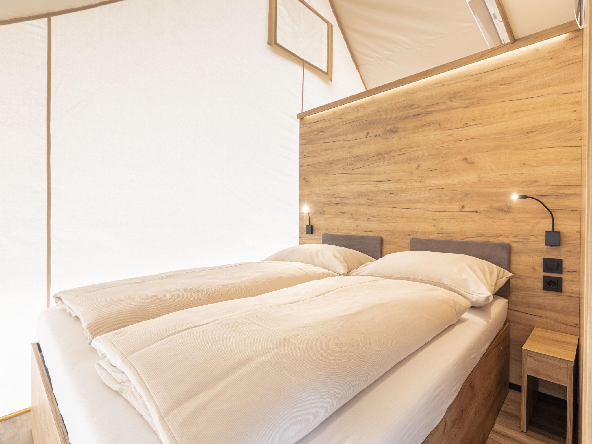 "Luxuszelt Safari für 6 Personen", 3-room mobile home 38 m2. Bright, cosy furnishings: 1 double bedroom. 1 room with 2 beds. Living/dining room with dining table, satellite TV and flat screen. Open kitchen (dishwasher, 4 ceramic glass hob hotplates, toaster, kettle, freezer, electric coffee machine). Shower/WC. No heating option. Upper floor: 1 double bedroom. Terrace. Terrace furniture. Very beautiful view of the mountains and the resort. Facilities: Internet (WiFi, free). Please note: non-smokers only. The property is one of a type of property or apartment. ATTENTION: The object is a tent! Air conditioning available, it can also be heated minimally with this!