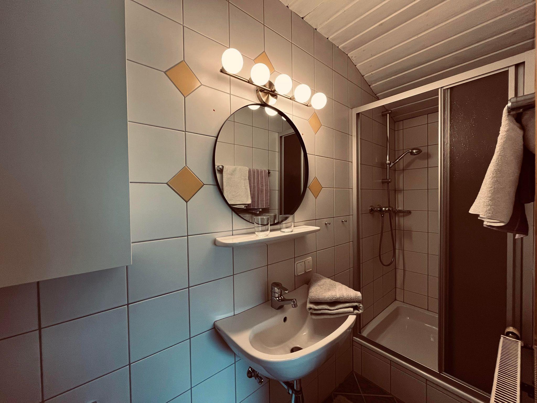 Zimmer mit Doppelbett - ca. 55m² - gemütlich eingerichtet mit Talblick - Bad mit WC und Dusche
