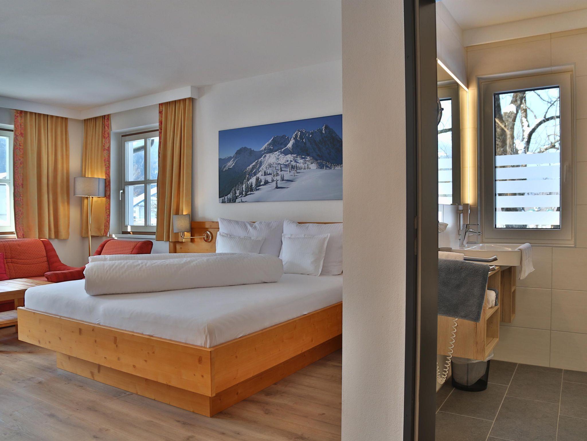 Das Haus wurde im Jahr 2017 total renoviert. Die neu errichteten und sehr geräumigen Zimmer und Apartment sind mit Vollholzmöbel eingerichtet und verfügen über Flachbild-TV, Zimmersafe, Bad mit Dusche, Haarföhn, Kosmetikspiegel, Wohncouch, Schreibtisch und kostenfreies WLAN. Fast alle Zimmer haben einen Balkon mit freiem Blick auf die faszinierende umliegende Bergwelt.