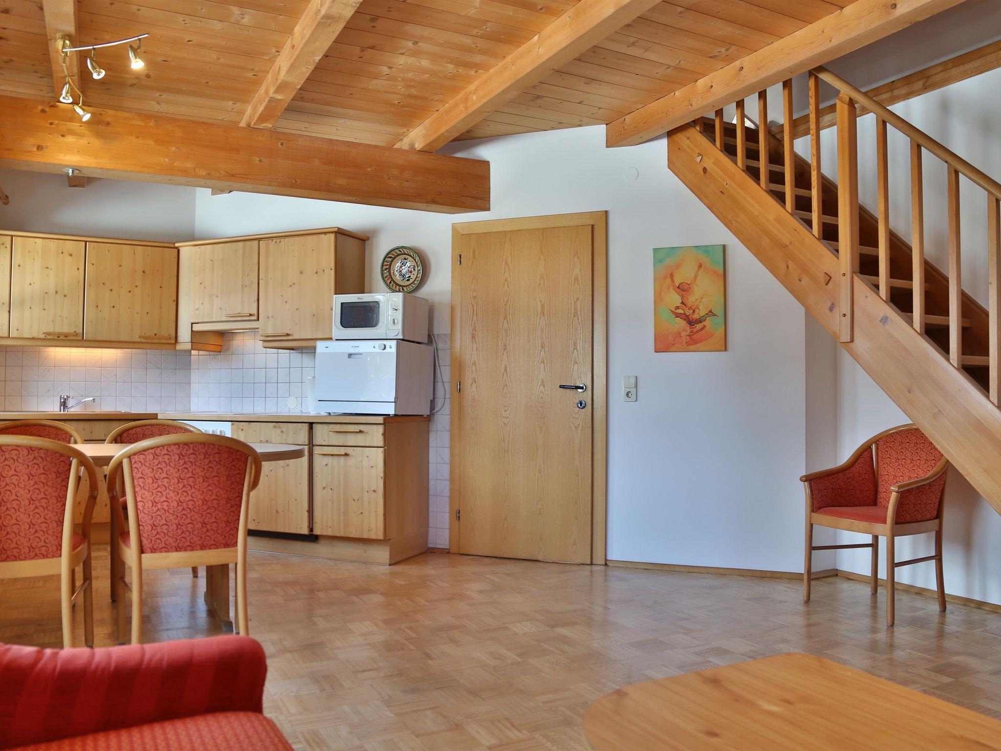 Die Ferienwohnung geht über 2 Etagen, mit 2 Schlafzimmer, einem Wohnbereich mit einer komplett ausgestatteten Küche.