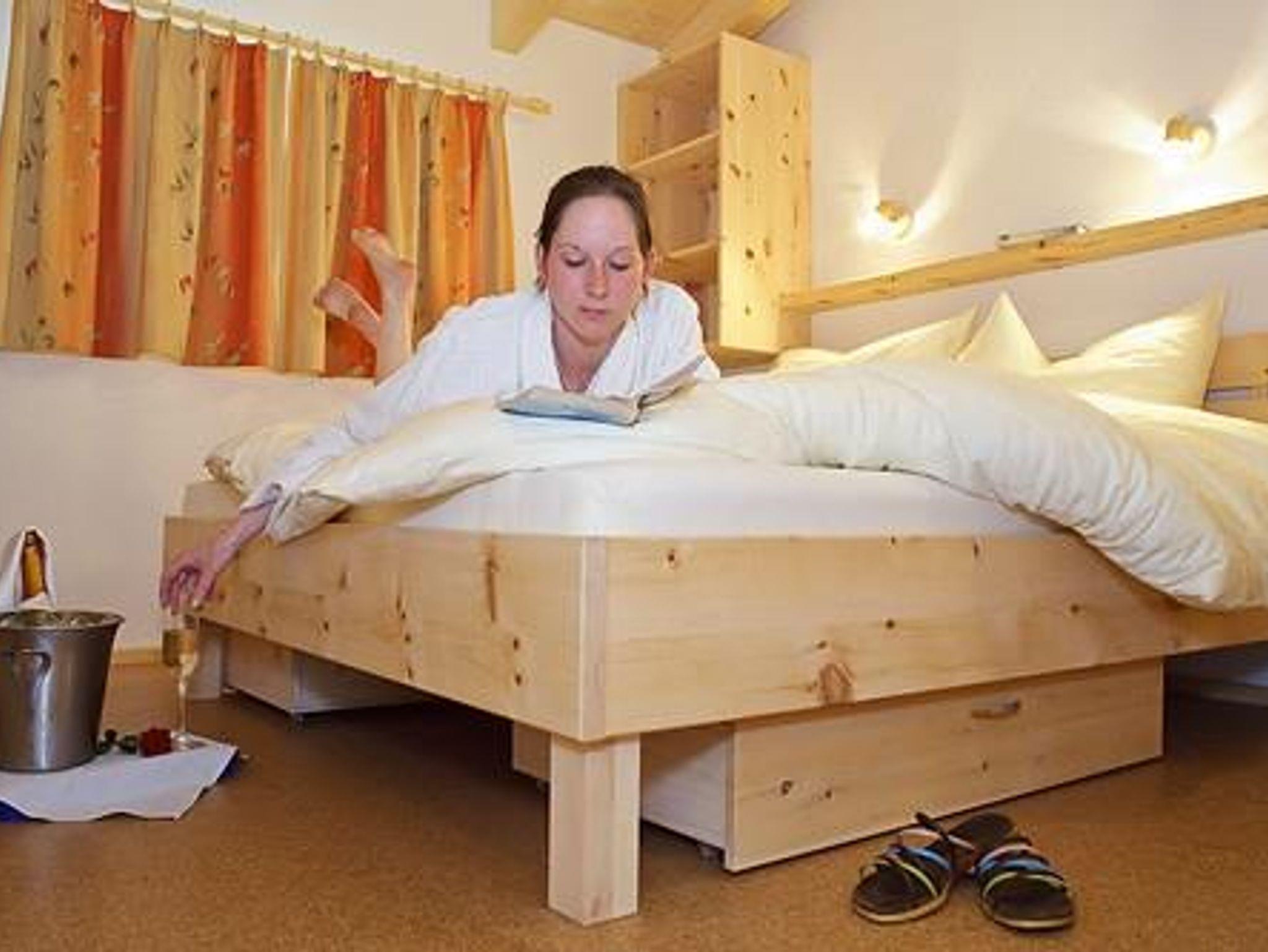 1 Ferienwohnung für 2 bis 4 Personen. Wohnfläche ca. 40 - 42 m². Küche, Schlafzimmer, Kinderzimmer, Bad, WC, Balkon, Sat-TV. Elternzimmer aus Zirbenholz, Kinderzimmer aus Fichtenholz.