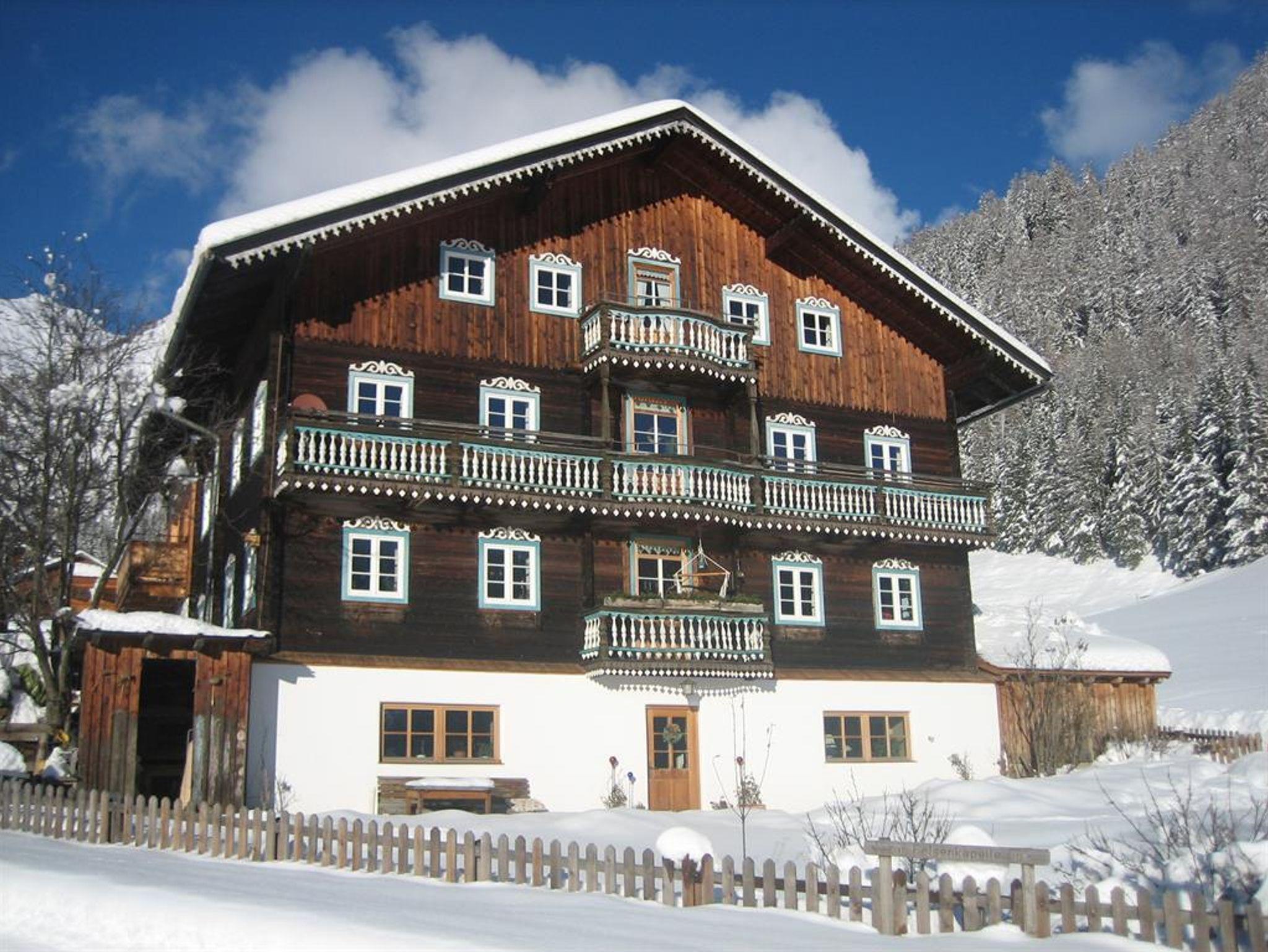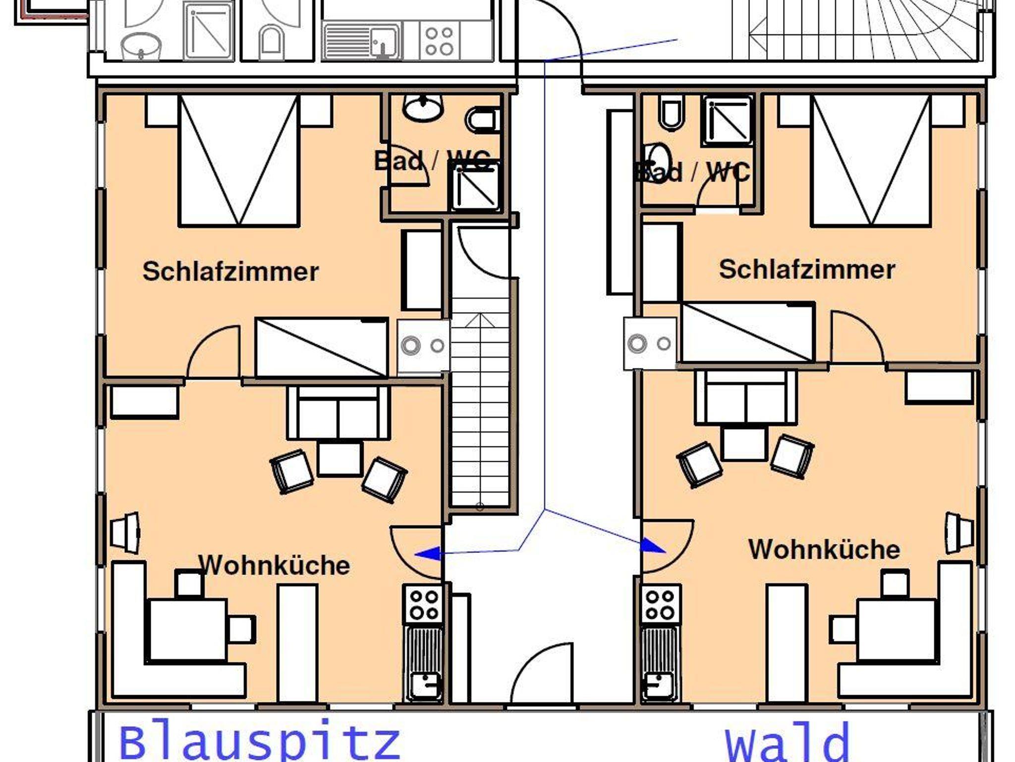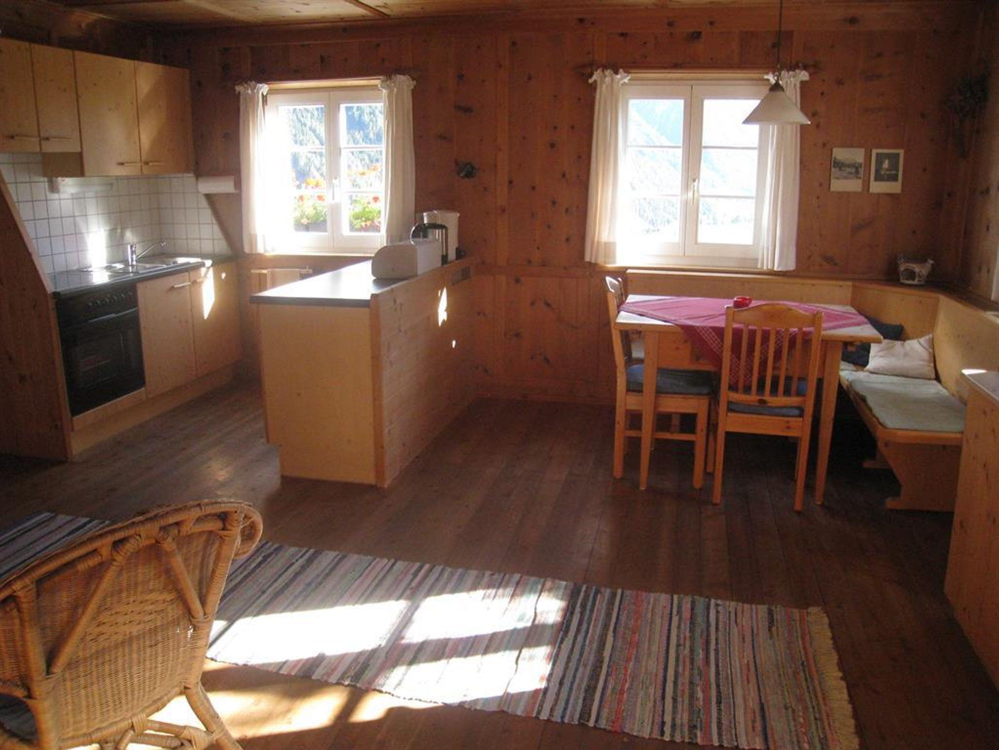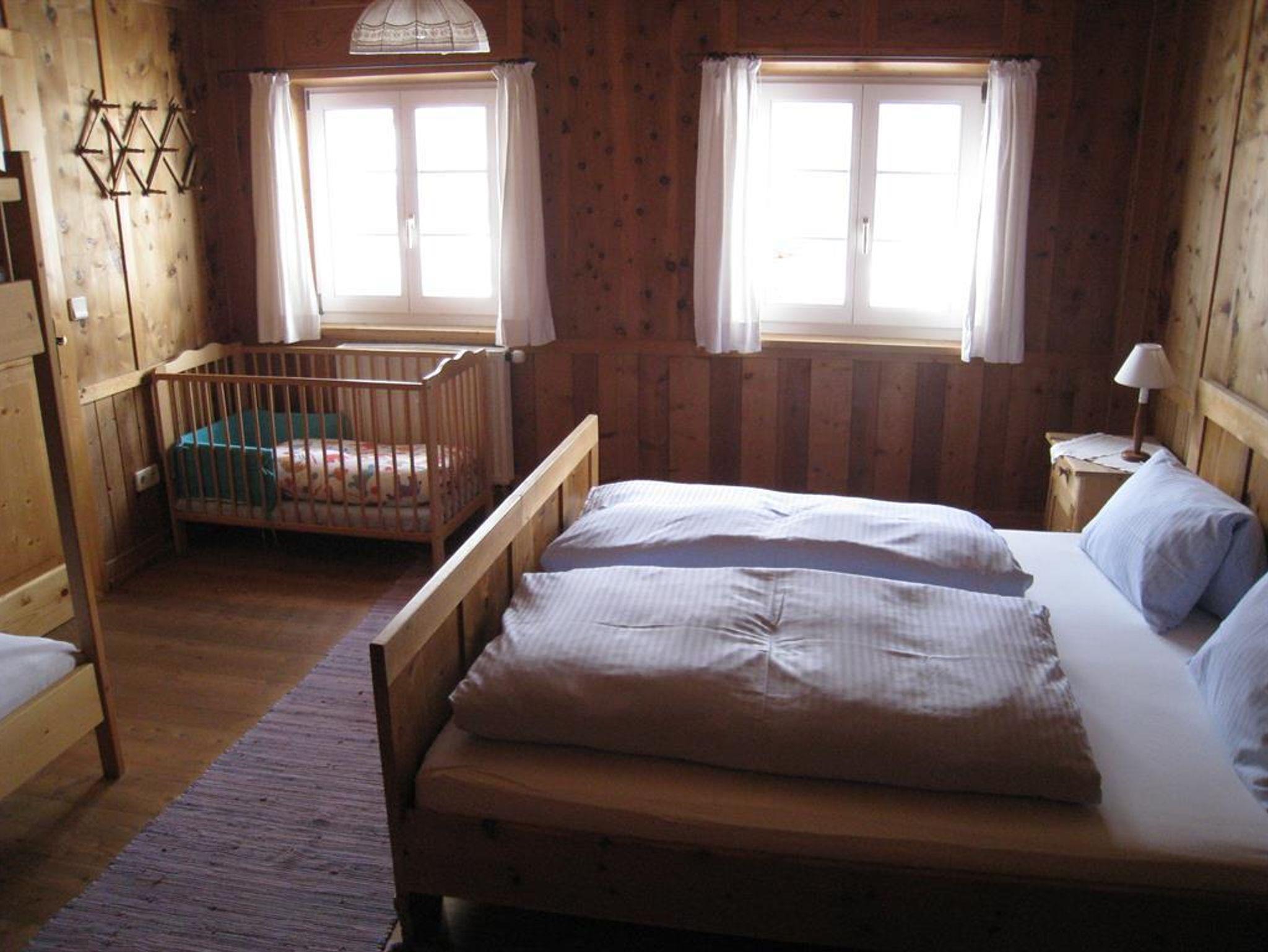 Unsere Wohnungen Blauspitz und Wald liegen im Obergeschoss mit großem Balkon nach Süden und gemütlicher Einrichtung. Alte Zirbengetäfle.