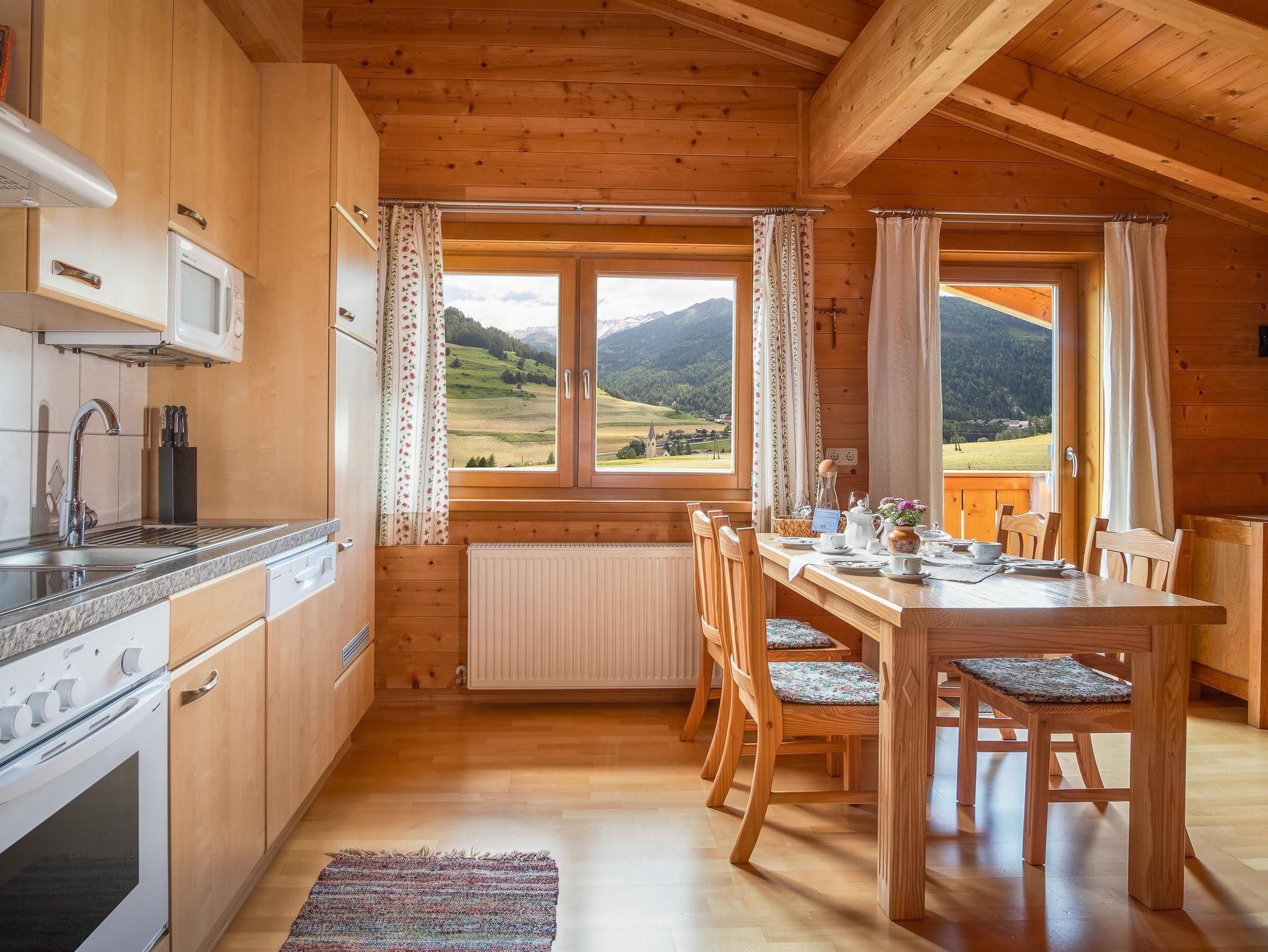 Harmonisch, biologisch, freundlich, hell. 4 Apartments, je 60 m² bis 70 m² sind ähnlich eingerichtet und für Allergiker geeignet. Zwei Apartments im ersten Stock haben Dusche und WC getrennt. Alle haben den Panoramablick in die Nationalpark-Bergwelt.