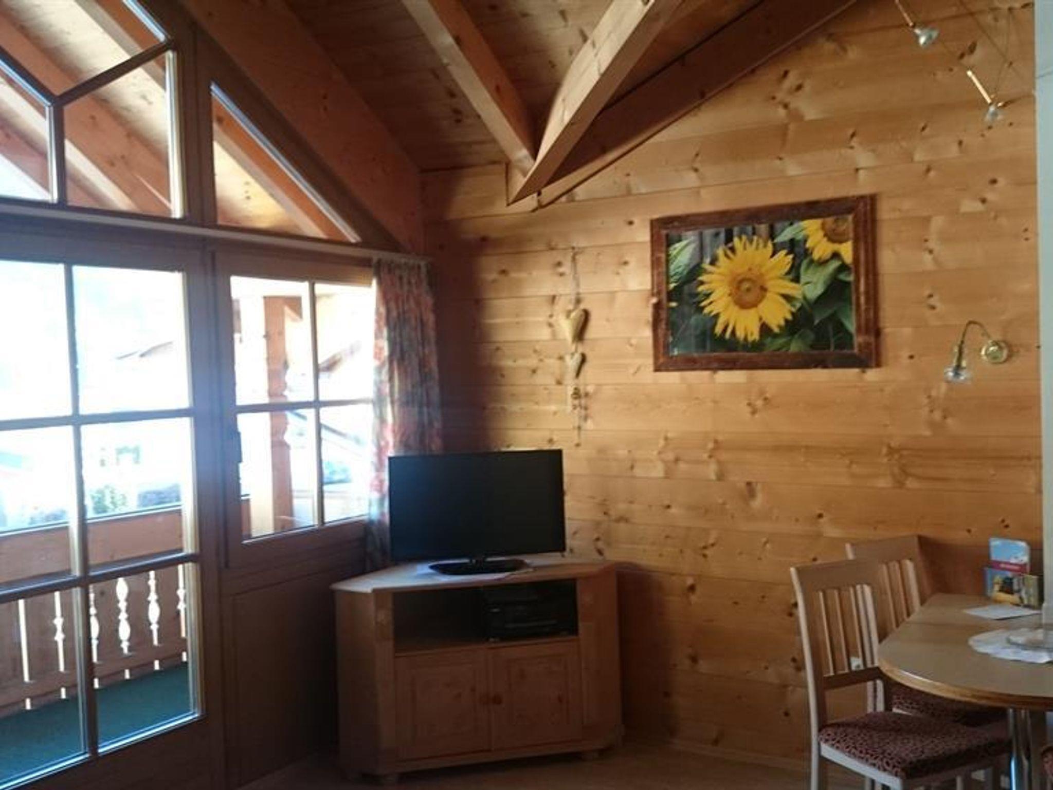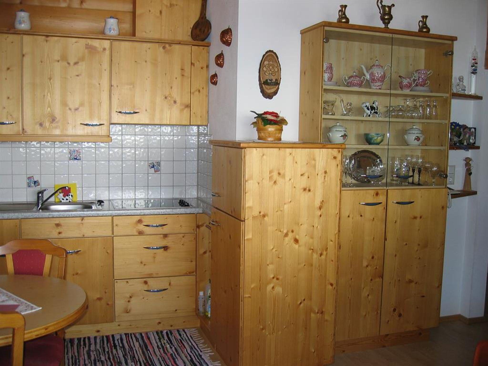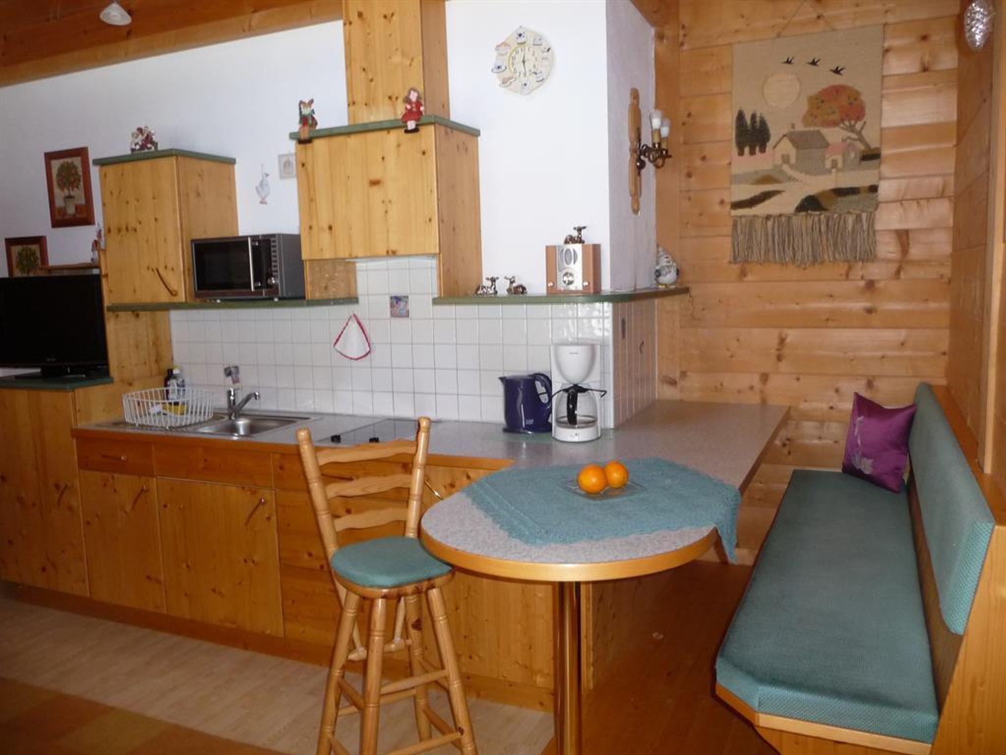 Gemütliches Appartement in Holzblockweise bestehend aus Wohnküche, Schlafzimmer, Bad und Balkon. Sonnige Aussicht in die Berge im Osten. Komplette Ausstattung und liebevolle Einrichtung. Großer SAT-TV und kostenloses WLAN