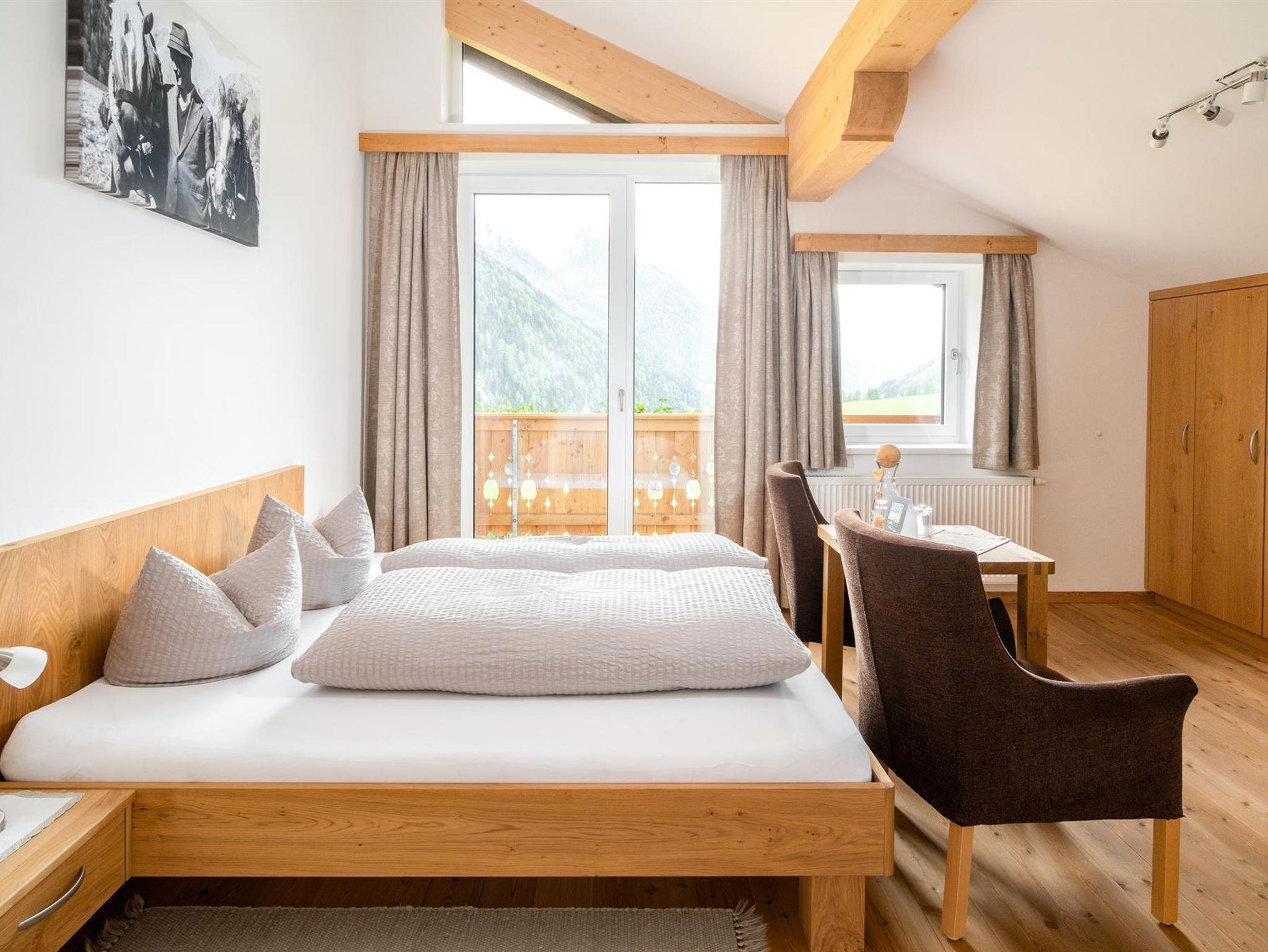 Das helle Doppelzimmer bietet einen unglaublichen Ausblick auf die Kalser Bergwelt und über Kals. So richtig zum Wohlfühlen ist das großzügige Badezimmer. Das Zimmer hat ca. 35m² und kann auch als Familienzimmer gebucht werden
