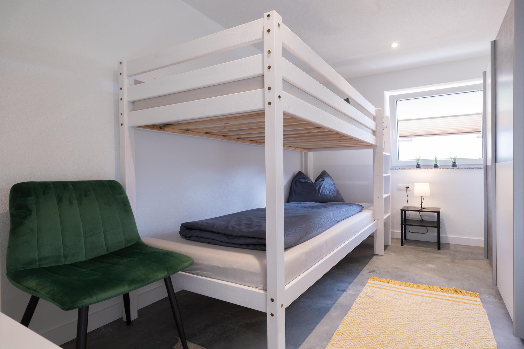 Åbent køkken(kogeplade, elkedel, kaffemaskine, ovn, opvaskemaskine , køleskab, fryser, ), stue / spisestue(Fjernsyn, spisebord), soveværelse(dobbeltseng), soveværelse(dobbeltseng), soveværelse(køjeseng), badeværelse(bruser, føntørrer), toilet, Internetadgang, balkon, parkering