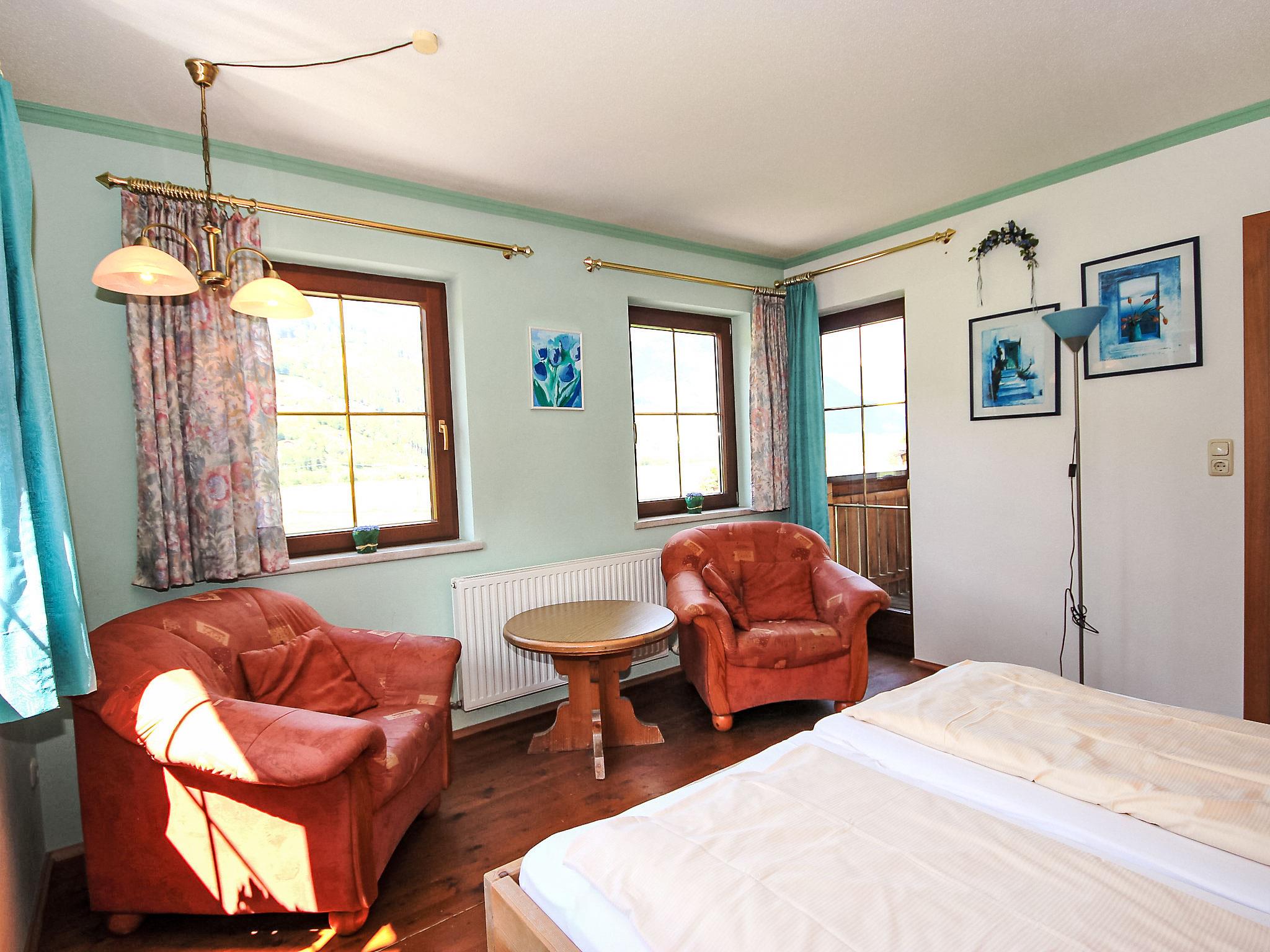 4-room apartment 100 m2, on the ground floor. Comfortable and cosy furnishings: 1 double bedroom. 1 room with 1 bed, 1 double bed and shower/WC. Exit to the balcony. 1 double bedroom. Exit to the balcony. Large kitchen-/living room (oven, dishwasher, 4 ceramic glass hob hotplates, microwave) with dining nook, satellite TV and radio. Shower/WC, sep. WC. Very beautiful view of the mountains and the countryside. Facilities: Internet (WiFi, free). Please note: non-smokers only. Important: Maximum of 7 occupants in house (including cot).