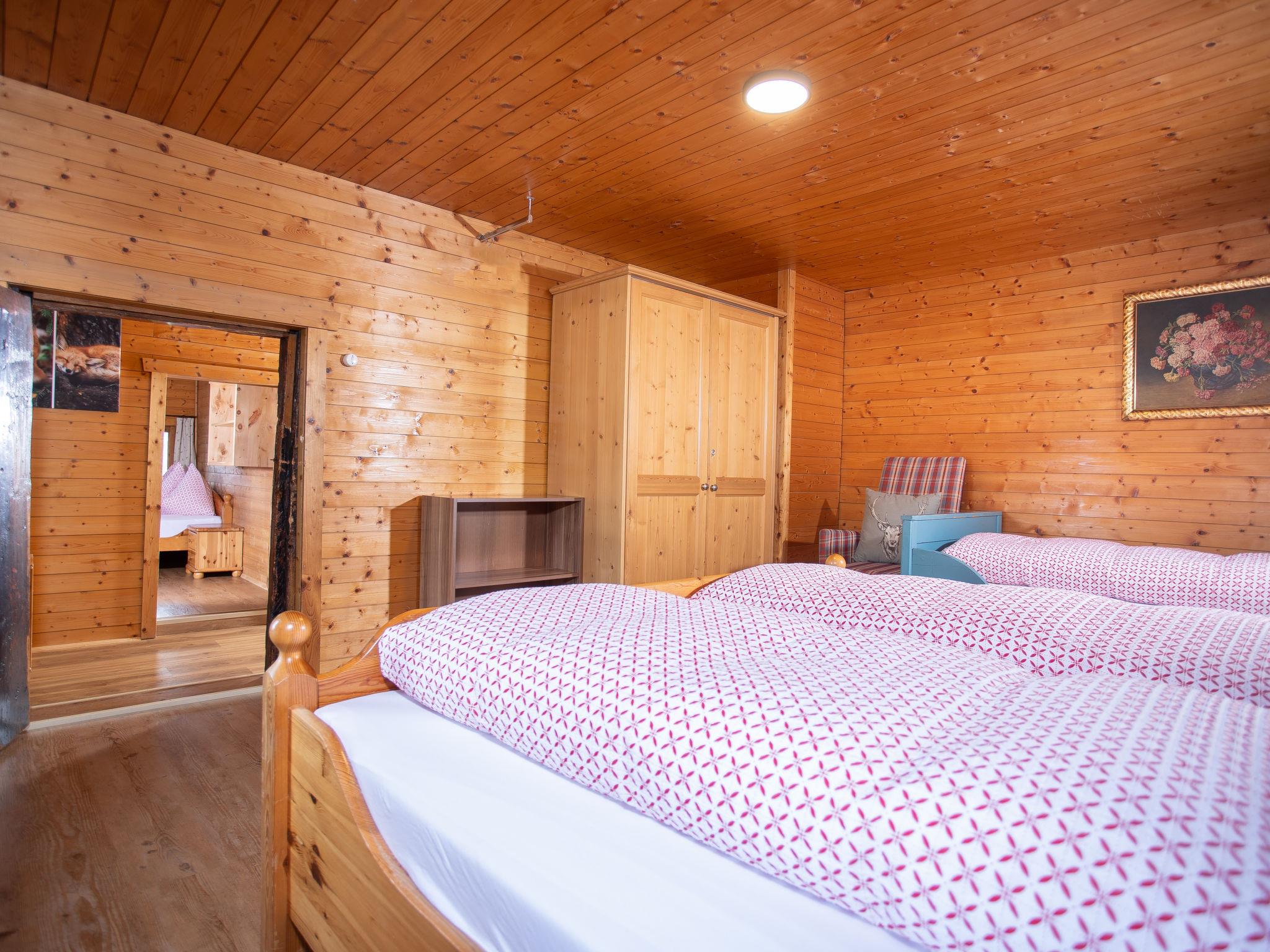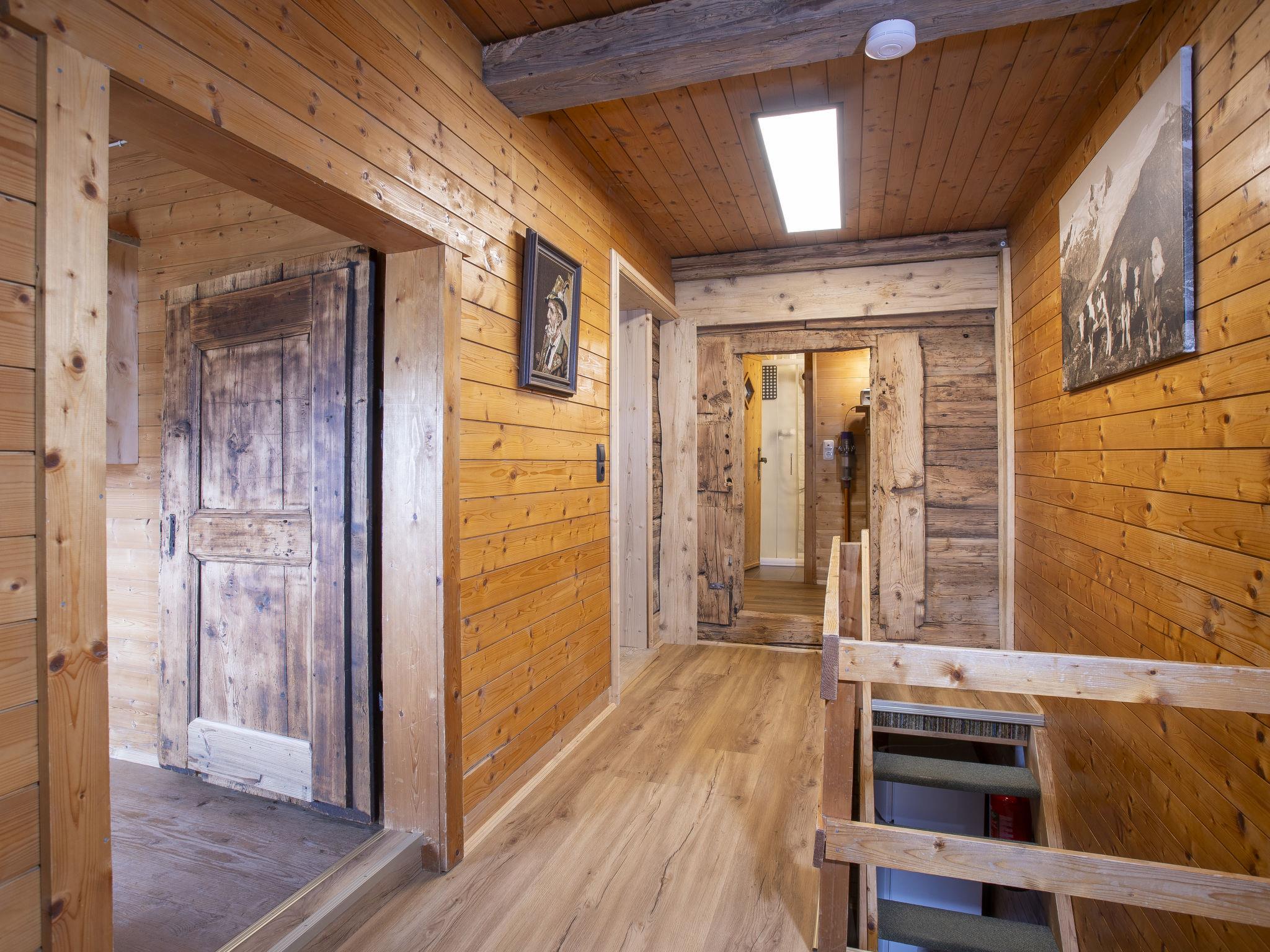 7-room farmhouse 150 m2 on 2 levels. Rustic furnishings: entrance hall. Large living room with dining nook and satellite TV (flat screen). 1 double bedroom. Kitchen (oven, dishwasher, 4 ceramic glass hob hotplates, microwave) with dining nook. Shower, sep. WC. Upper floor: 2 double bedrooms. 2 rooms, each room with 1 bed and 1 double bed. 1 room with 2 beds. Shower/WC. The living room is a farmhouse lounge. Balcony. Box-room. Marvellous panoramic view of the mountains and the valley. Please note: maximum 2 pets/ dogs allowed. Smoke alarm.