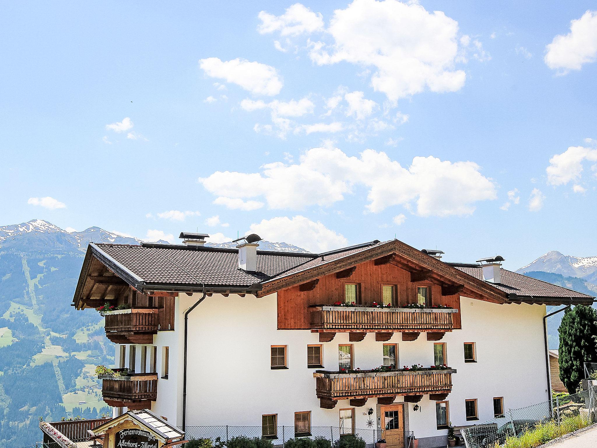 Gattererberg 5 km from Kaltenbach: Magnificent panoramic location. Large, beautiful apartment block "Hansjörg", surrounded by meadows. Above Stumm, in the district of Gatterberg 5 km from the centre of Stumm, 6 km from the centre of Kaltenbach, in a secluded, quiet, sunny position on a slope, 6 km from the lake, 6 km from the skiing area, in the countryside. For shared use: meadow, lawn for sunbathing. Garden furniture, barbecue, children's playground (swing). In the house: storage room for bicycles, storage room for skis, central heating system. Bread roll service (extra). Motor access to the house. In Winter: please take snow chains. Parking at the house. Supermarket 5 km, bus stop "Gattererberg Bergrast" 130 m, railway station "Kaltenbach-Stumm Bahnhof" 5.8 km, outdoor swimming pool 5 km, thermal baths "Erlebnistherme Fügen" 11 km, bathing lake 6 km. Tennis 6 km, gondola lift 6 km, skisport facilities 6 km, ski school 6 km, cross country ski track 5 km. Please note: car recommended. Additional accommodations can be booked.