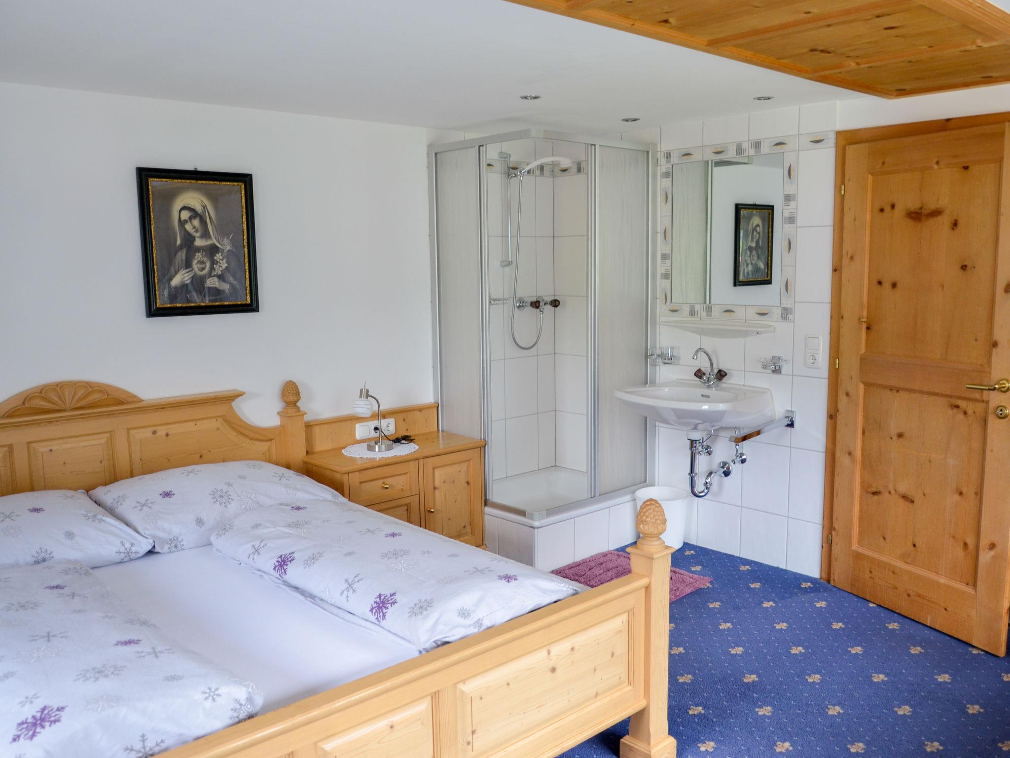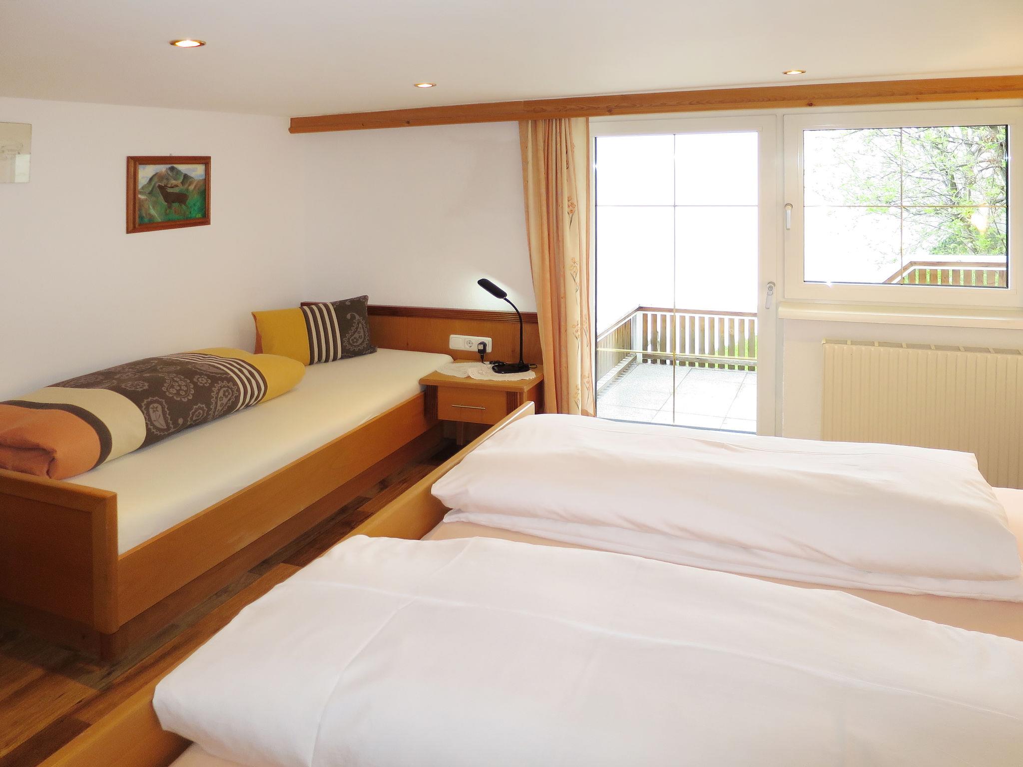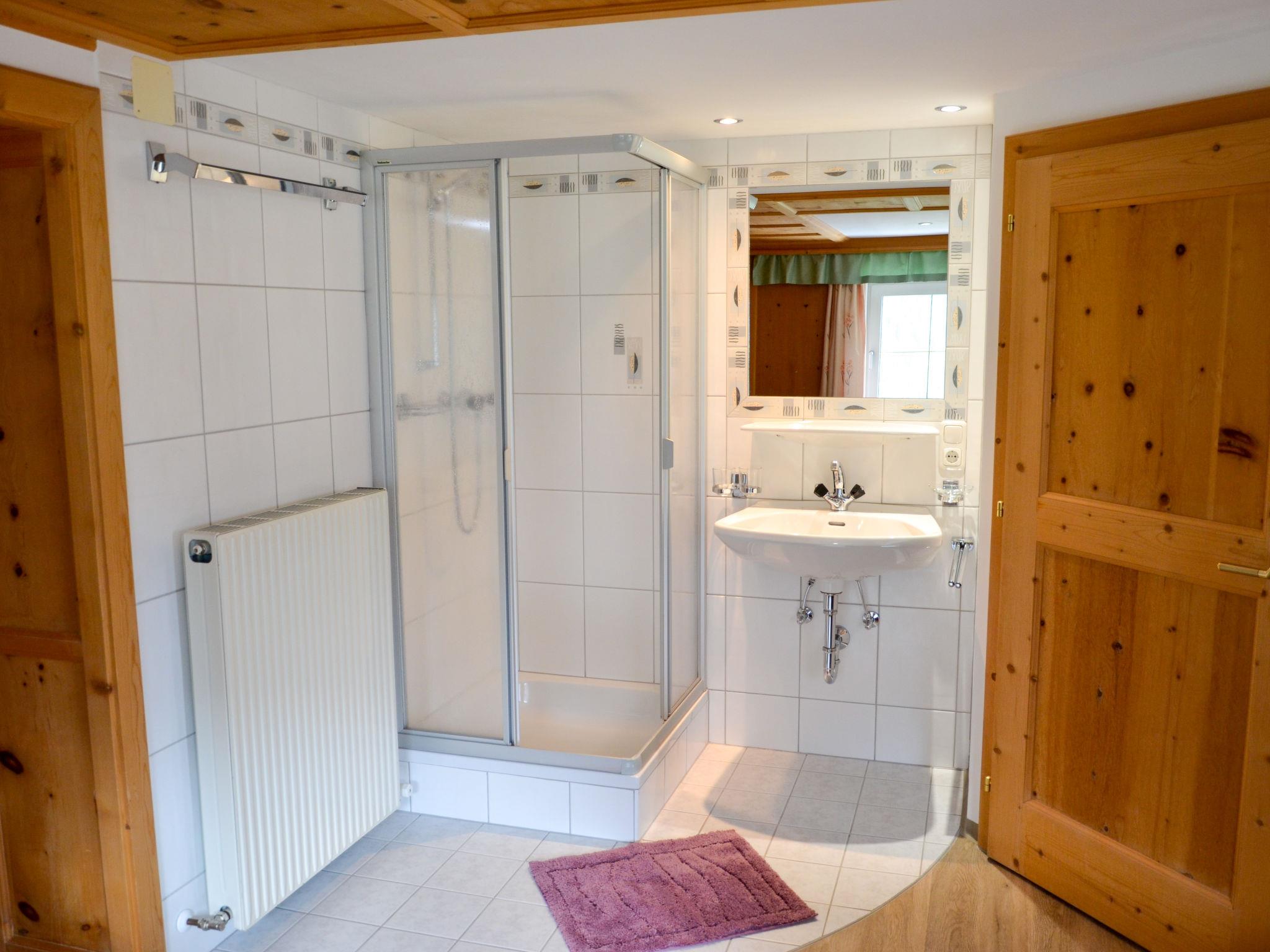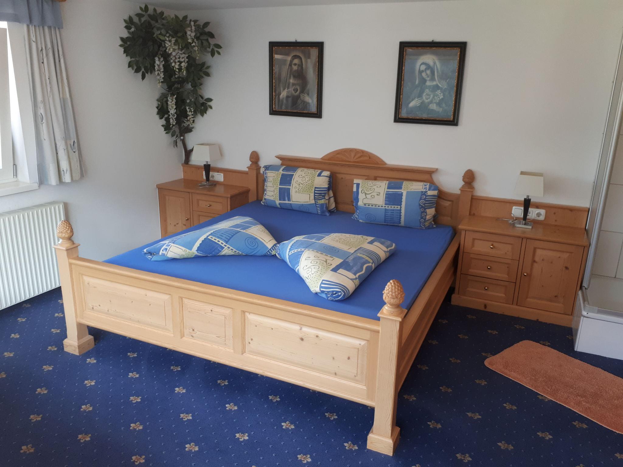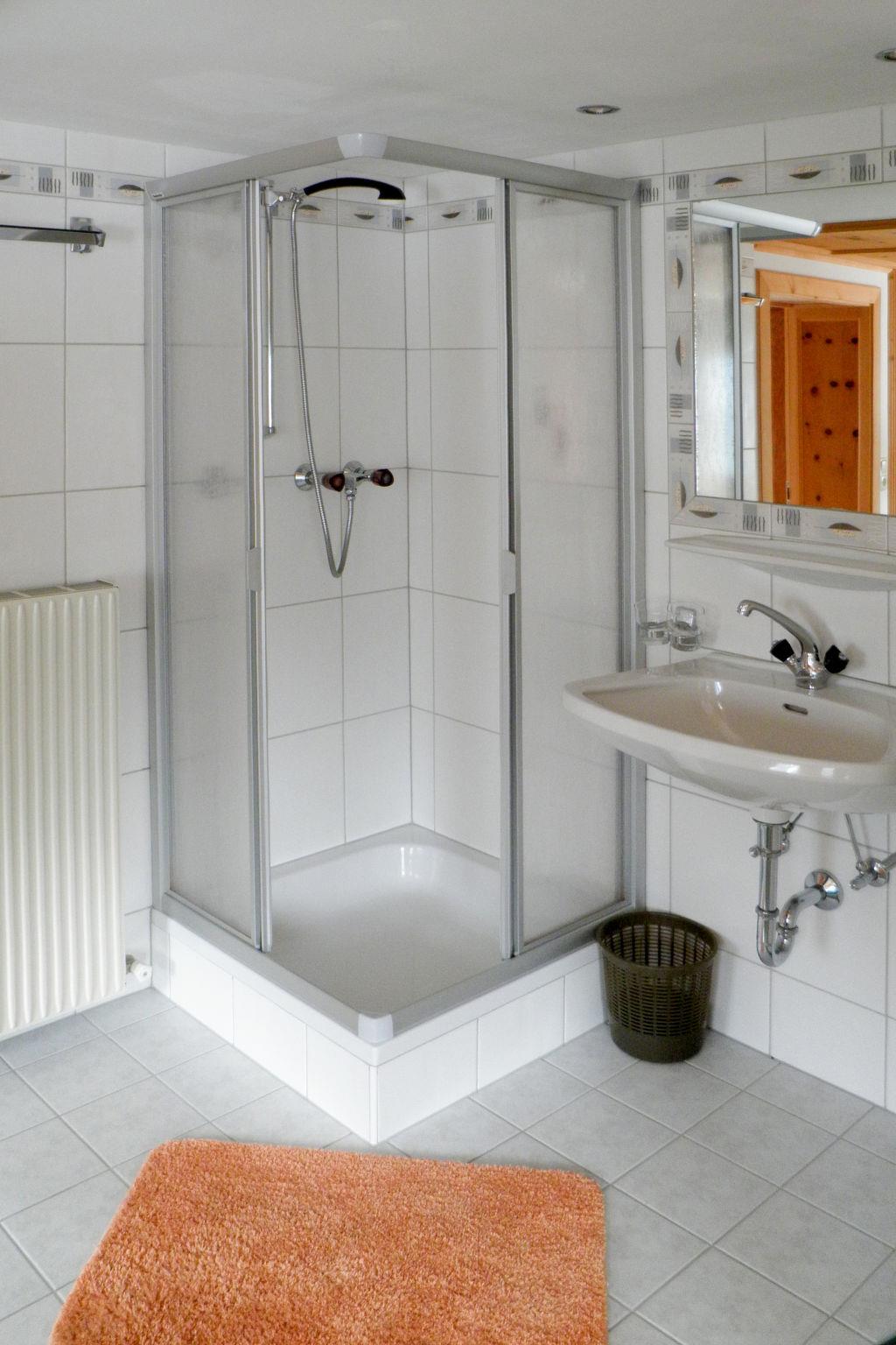 "Selina", 4-room apartment 90 m2 on 1st floor. Cosy furnishings: walk-through room with 1 double bed, hand-basin and shower. 1 room with 1 bed, 1 double bed, hand-basin and shower. 1 room, ceiling height 185 cm with 1 bed, 1 double bed, hand-basin and shower. Kitchen-/living room (oven, dishwasher, 4 ceramic glass hob hotplates, kettle, microwave, electric coffee machine) with dining nook and satellite TV. Bath/WC. Heating. Wooden floors. Beautiful panoramic view of the mountains and the valley. Facilities: Internet (WiFi, free). Please note: maximum 1 pet/ dog allowed. Smoke alarm, fire extinguisher.