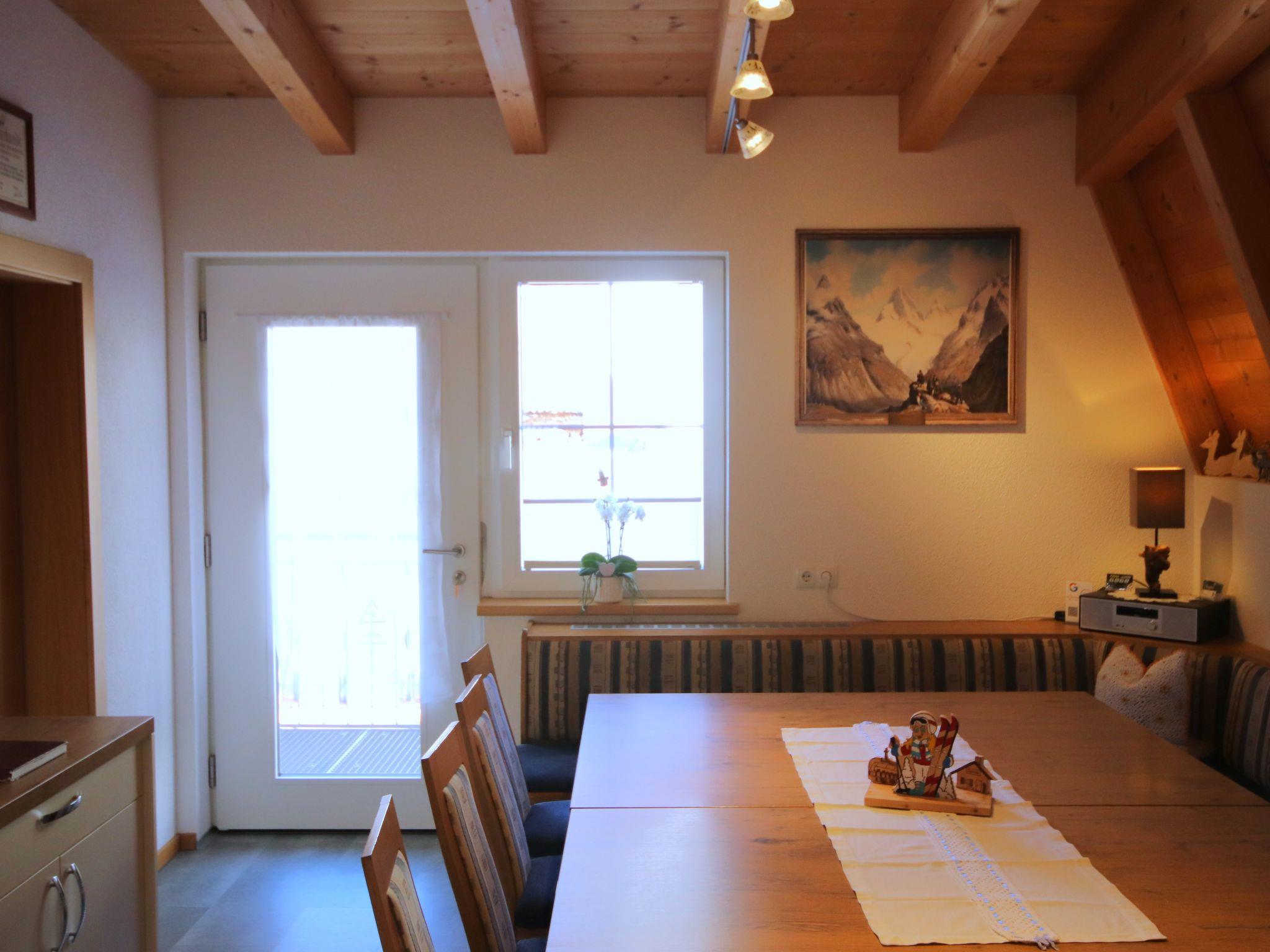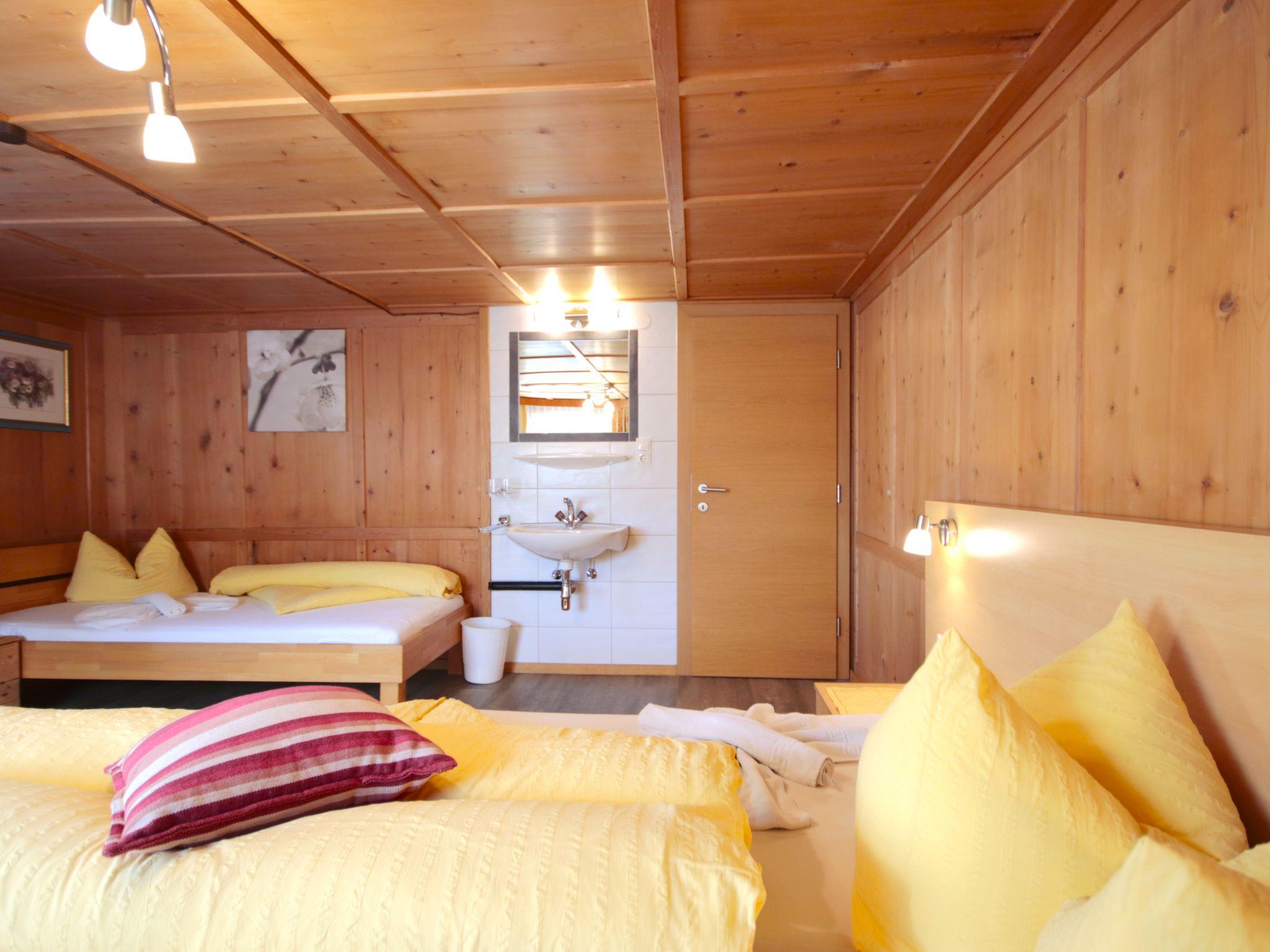 "Bergblick", 6-room house 160 m2 on 2 levels. Cosy and wooden furniture furnishings: upper floor: 1 room with 1 double bed, hand-basin and satellite TV. 1 room with 1 bed (90 cm, length 200 cm), 1 double bed and hand-basin. 1 double bedroom with 1 bed (90 cm, length 200 cm), 1 double bed. Shower/WC. 2nd upper floor: 2 double bedrooms, each room with shower/WC. 1 room with 1 french bed (140 cm, length 200 cm). Large kitchen-/living room (oven, dishwasher, 4 ceramic glass hob hotplates, toaster, kettle, freezer, electric coffee machine) with dining table, satellite TV and radio. Shower/WC. Carpet. Large terrace 60 m2. Terrace furniture. Beautiful panoramic view of the mountains and the valley. Facilities: children's high chair, baby cot, hair dryer. Internet (WiFi, free). Parking (roofed, 4 cars) at 100 m. Please note: non-smokers only. Private entrance, smoke alarm, fire extinguisher.