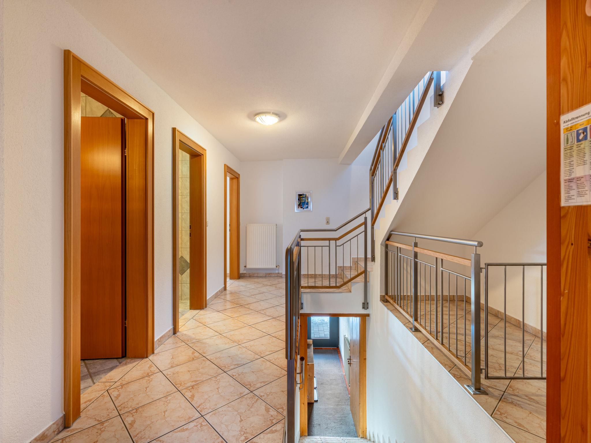 "Sailer", 7-room apartment 125 m2 on 3 levels. Bright: upper floor: living room with satellite TV. 1 room with 1 double bed and satellite TV. Kitchen-/living room (oven, dishwasher, 4 ceramic glass hob hotplates, kettle, microwave, electric coffee machine). Exit to the balcony. Shower, sep. WC. Heating. 2nd upper floor: 1 room with 1 double bed and satellite TV. 2 rooms, each room with 2 beds and satellite TV. 1 room with 1 bed, 1 double bed and satellite TV. Shower, sep. WC. Balcony. Facilities: baby cot. Internet (WiFi, free). Parking (3 cars). Please note: non-smokers only. Smoke alarm, fire extinguisher. Open access to the apartment from the staircase. If there are fewer people occupied than the maximum number of people, not all residential units are available (in summer).