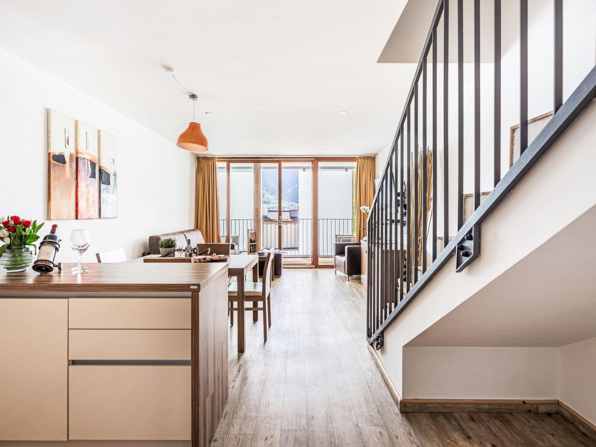 2-room apartment 65 m2 on 2 levels. Bright, tasteful and cosy furnishings: living/sleeping room with 1 double sofabed, dining nook, satellite TV and flat screen. Luggage room. Open kitchen (oven, dishwasher, 4 ceramic glass hob hotplates, toaster, kettle, microwave, freezer, electric coffee machine, Capsules for coffee machine (Nespresso) extra). Sep. WC. Underfloor heating. Upper floor: 1 double bedroom with satellite TV and flat screen. Bath/WC. 2 balconies. Balcony furniture. Very beautiful panoramic view of the mountains. Facilities: hair dryer. Internet (WiFi, free). Please note: non-smokers only. Maximum 1 pet/ dog allowed. Smoke alarm. The property is one of a type of property or apartment. 50616-001123-2020