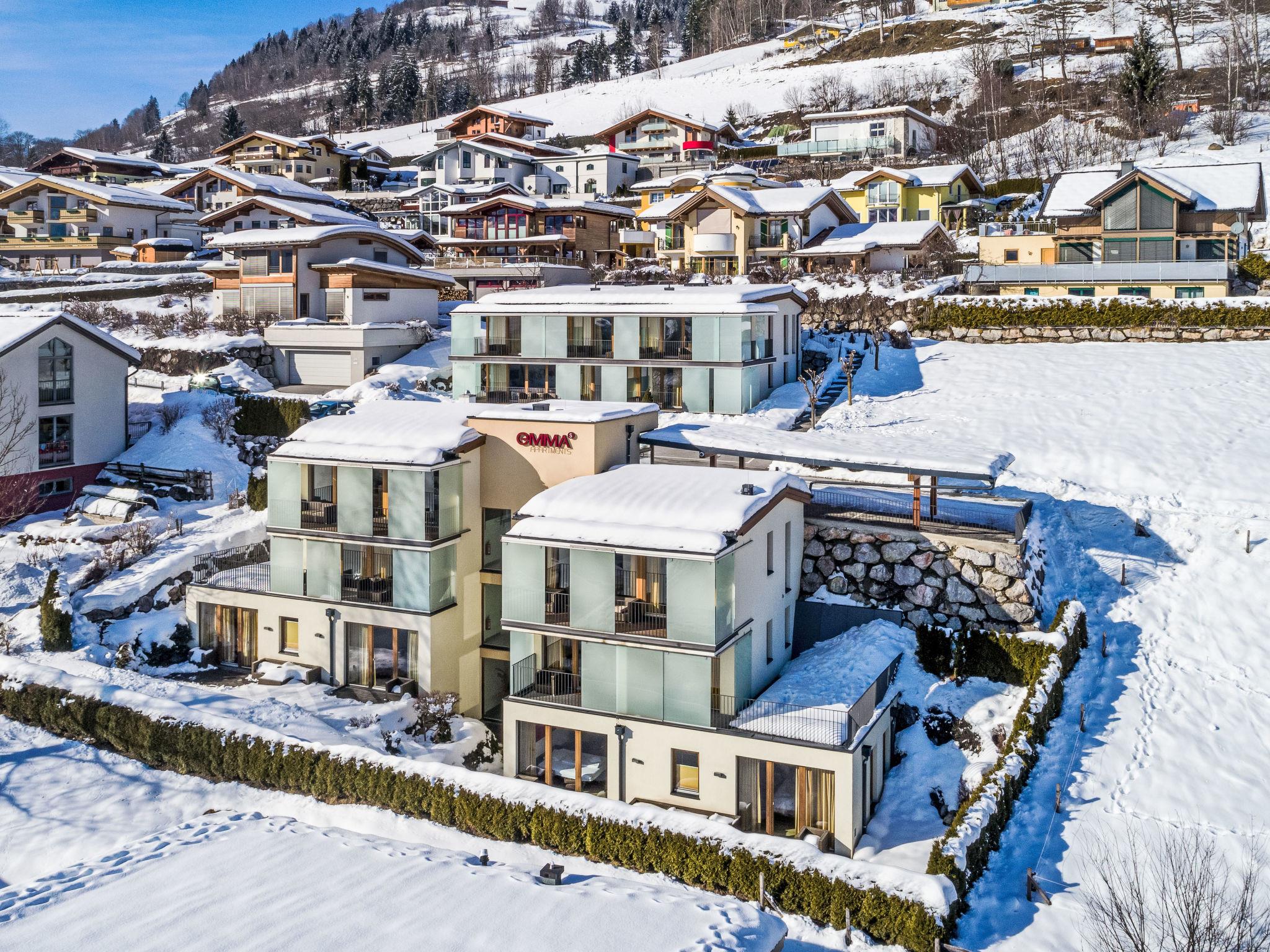 Piesendorf-Fürth: Modern, comfortable apartment block "Emma", 3 storeys. 2 houses in the residence. In a sunny, elevated position on a slope, 1 km from the lake, 2.5 km from the skiing area. In the house: sauna (extra). Storage room for skis, ski boot dryer. Bread roll service. In Winter: please take snow chains. Roofed, parking at the house. Supermarket 2.5 km, restaurant 280 m, bus stop "nach Kaprun und Zell am See" 500 m, outdoor swimming pool 3 km, thermal baths "Tauern Spa Kaprun" 1.7 km. Golf course (36 hole) 2.5 km, gondola lift 2.7 km, cross country ski track 1 km. Well-known ski regions can easily be reached: Maiskogel 2.7 km, Schmittenhöhe 8.9 km, Kitzsteinhorn 9 km. Well-known lakes can easily be reached: Zeller See 6.5 km. The holiday properties may differ in living space, floorplan, equipment and furnishing. The check-in for the Emma Apartments is in the Emma Deluxe apartment building (Fürth 153, 5721 Piesendorf). Late arrivals are only possible by prior arrangement (24 hours in advance).