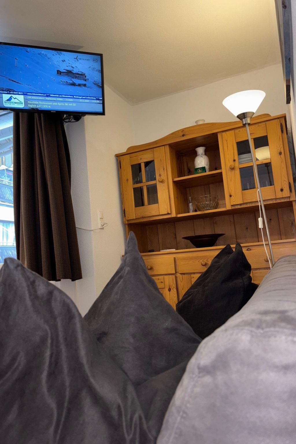 "2_Kap-9-Cosy Kaprun Apartment", 3-room apartment 56 m2 on 1st floor. Object suitable for 4 adults + 1 child. Living room with 1 sofabed and TV. 1 room with 1 french bed and TV. 1 room with 1 x 2 bunk beds. Kitchen, open kitchen (oven, dishwasher, kettle, microwave, freezer, electric coffee machine). Shower/WC. Balcony. View of the mountains. Facilities: iron, hair dryer. Internet (WiFi, free). Please note: non-smokers only. 2 pets/ dogs allowed.