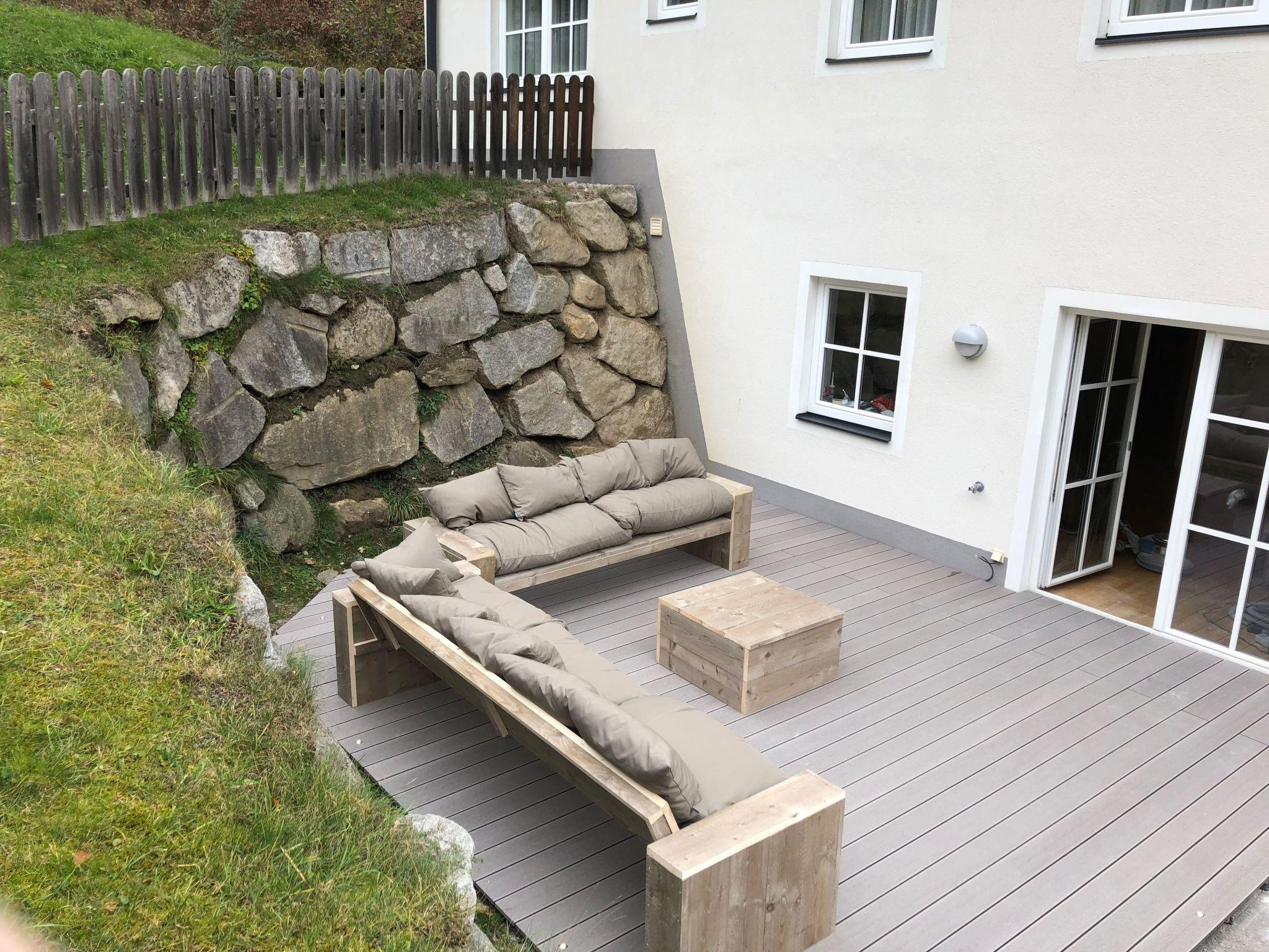 The flat also features a private garden (wooden terrace), where you can enjoy the outdoors for most of the day. Located on the ground floor, it offers easy access to the beautiful surrounding nature. The terrace invites for relaxing evenings or early mornings in peace and quiet.