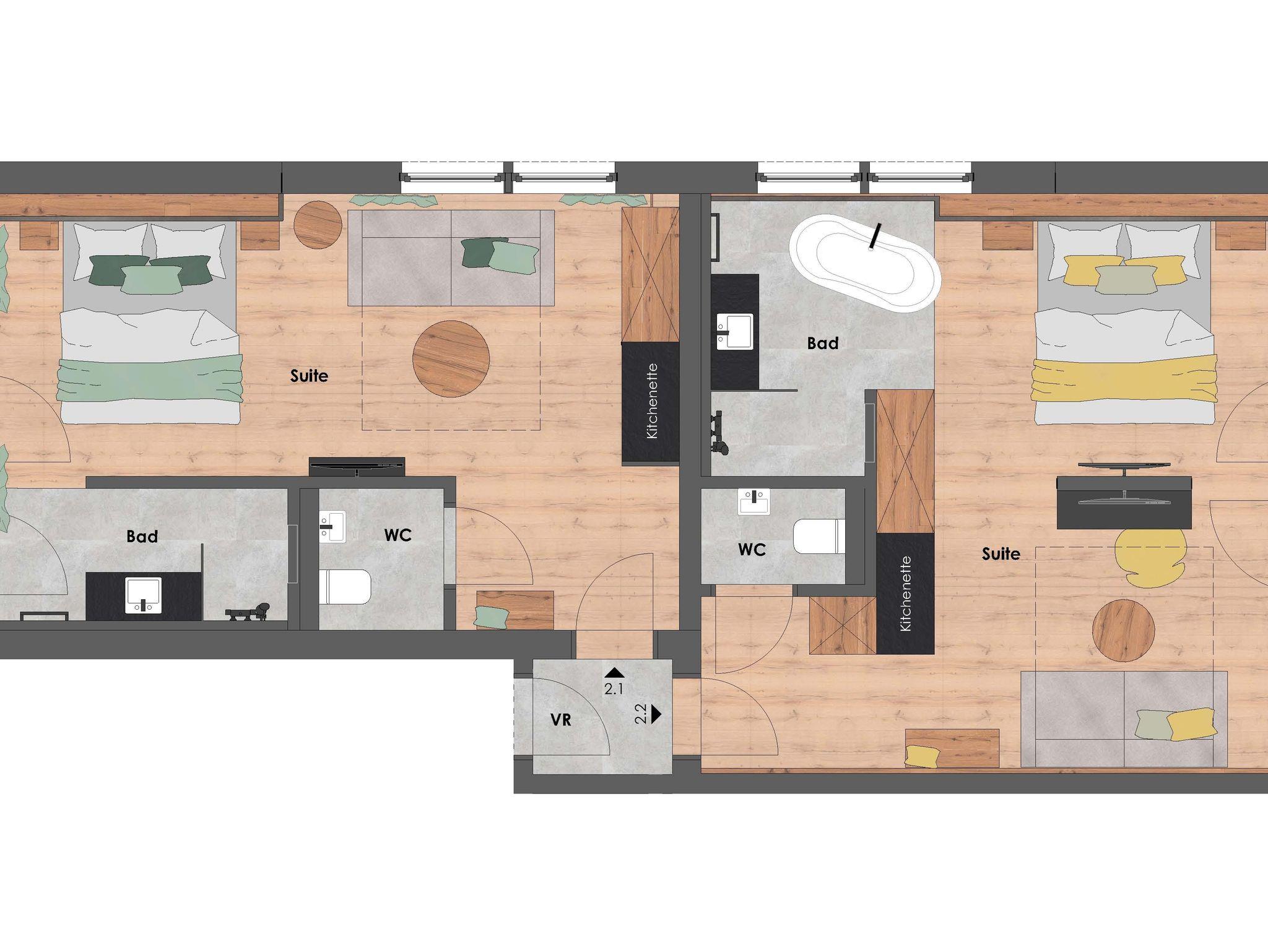 Sie benötigen mehr Platz? Die Juniorsuite Berg kann mit einer Juniorsuite See zu einer großen 65 m² Suite verbunden werden.