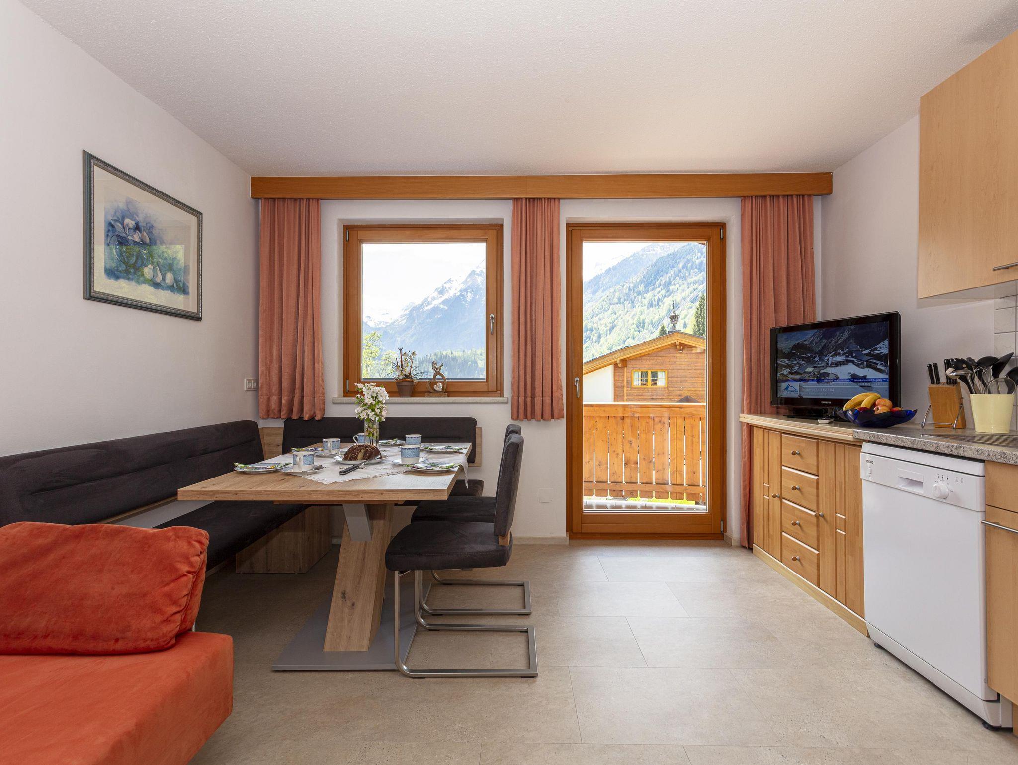 Das Appartement hat eine sehr komfortable Wohnküche mit gemütlicher Essecke und ausziehbarer Couch, zwei getrennte Schlafzimmer (eines davon zusätzlich mit ausziehbarer Doppelcouch), 2 Bäder mit Dusche, 2 WC und 2 Balkone mit herrlichem Ausblick.