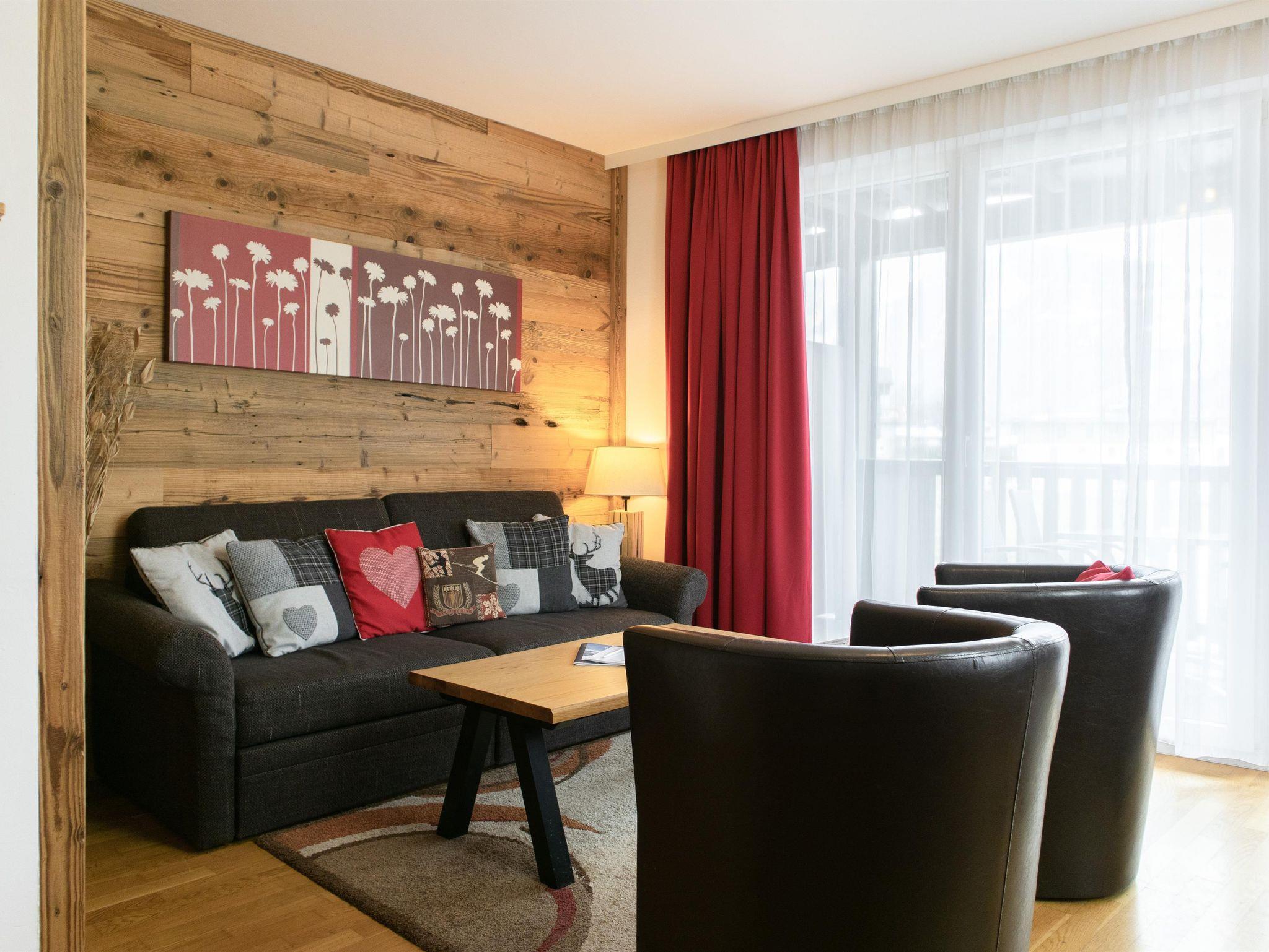 Hier wohnst du nah dran am Zentrum Kapruns und genießt schönste Aussichten auf das Kitzsteinhorn und den Maiskogel: In diesem eleganten, 54m2 großen Appartement im Adler Resort - by Alpin Family fühlen sich vier bis sechs Personen wohl.