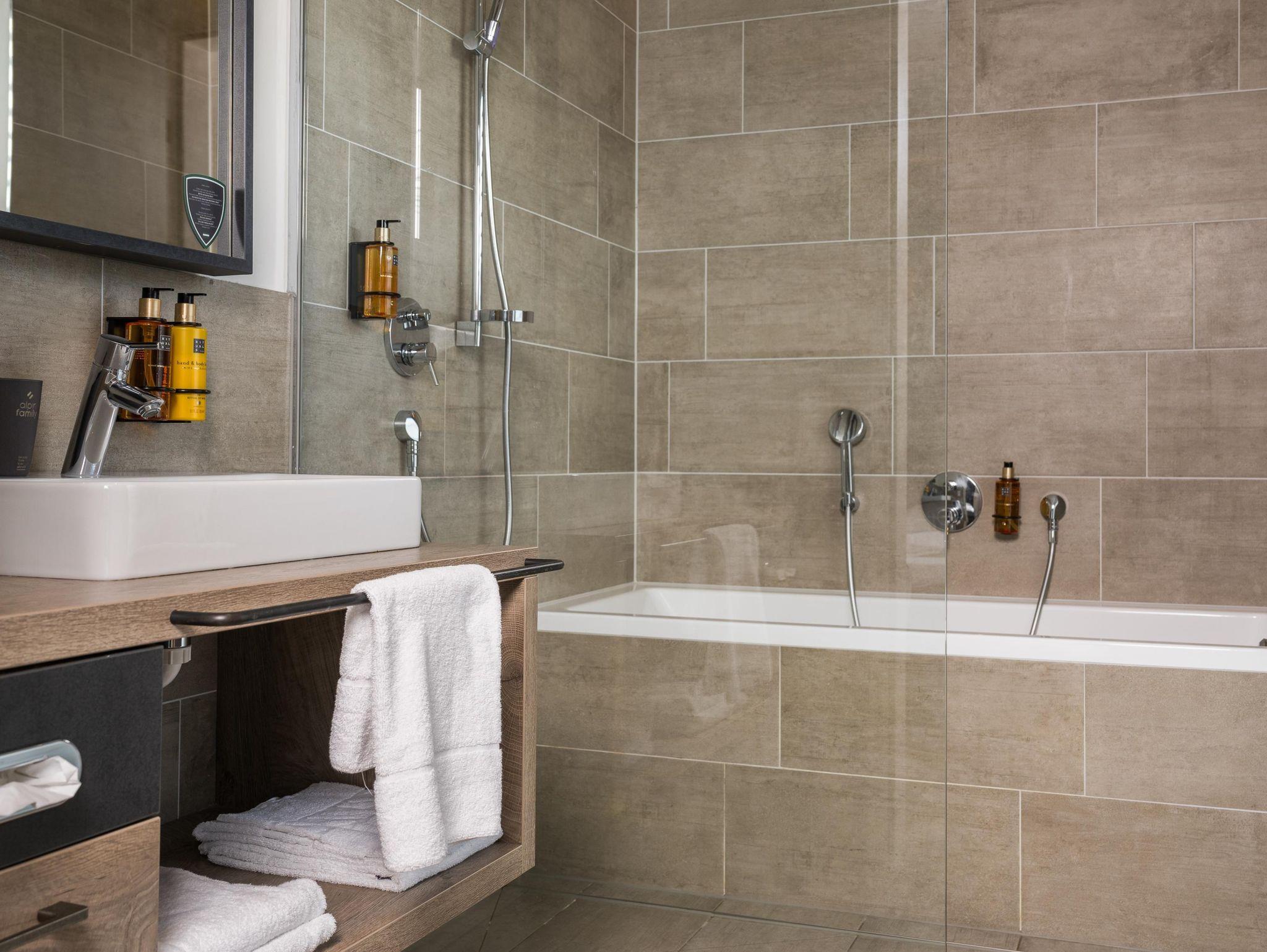 Das Superior Doppelzimmer ist das richtige Zimmer für einen Urlaub zu zweit. Die moderne Einrichtung im alpinen Stil schafft eine erholsame Atmosphäre. Im Zimmer finden Sie ein komfortables Bett und ein Badezimmer mit Badewanne und WC. Auf Ihrem privaten Balkon können Sie die frische Luft genießen.
