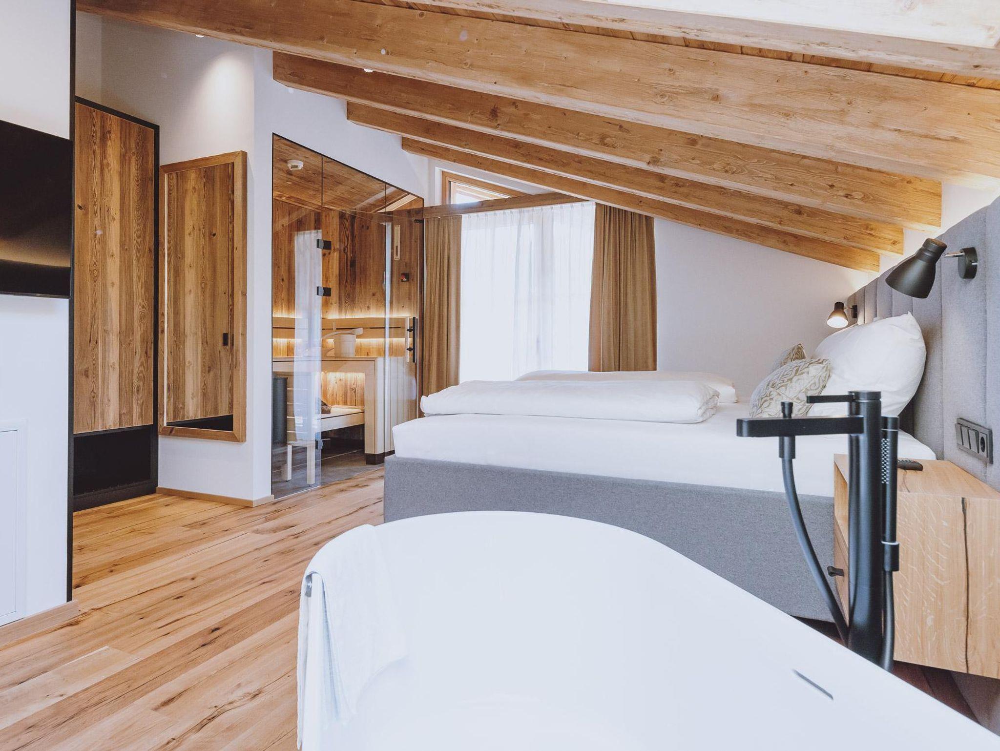 • Einen exklusiven Wellnessbereich mit Infinity-Pool, einer Finnischen- und Kräuter Sauna, Dampfbad und Infrarotsitzen.