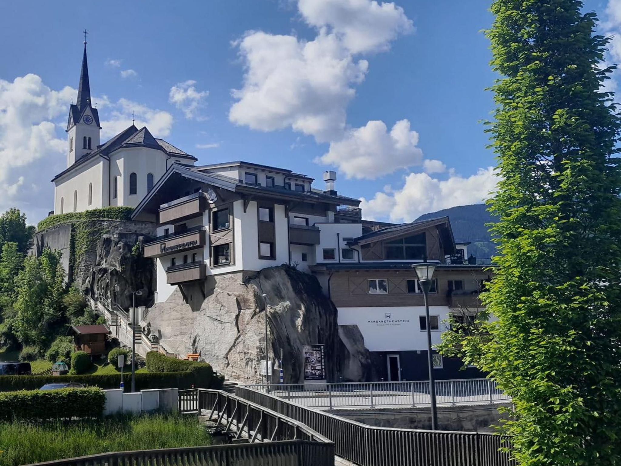 Das Margarethenstein – Boutique Hotel & Apartment hat in Kaprun einen ganz besonderen Platz gefunden: Das Hotel mit exklusiven Apartments thront auf dem namensgebenden Felsen „Margarethenstein“ mitten im Zentrum von Kaprun. Dadurch bietet dir das Haus nicht nur die optimale Ausganslage für den Ortsbummel, zum Skifahren und Wandern, sondern auch eine beeindruckende Panoramaaussicht über die Dächer von Kaprun. Das Boutique Hotel bietet neben Luxus-Suiten stylische und hochwertig ausgestattete Ferienwohnungen. Sie bieten dir auf bis zu 90m2 Platz für eine entspannte Auszeit mit deiner Familie oder deinen Freunden. Das Highlight in den Apartments ist neben der Aussicht die private Sauna in jeder Wohnung: So genießt du deine persönliche Wellnessoase. Und falls du keine Lust hast, selbst zu kochen, wirst du im hoteleigenen Restaurant kulinarisch verwöhnt. Dabei setzt das Margarethenstein ausschließlich auf beste Produkte aus der Region.