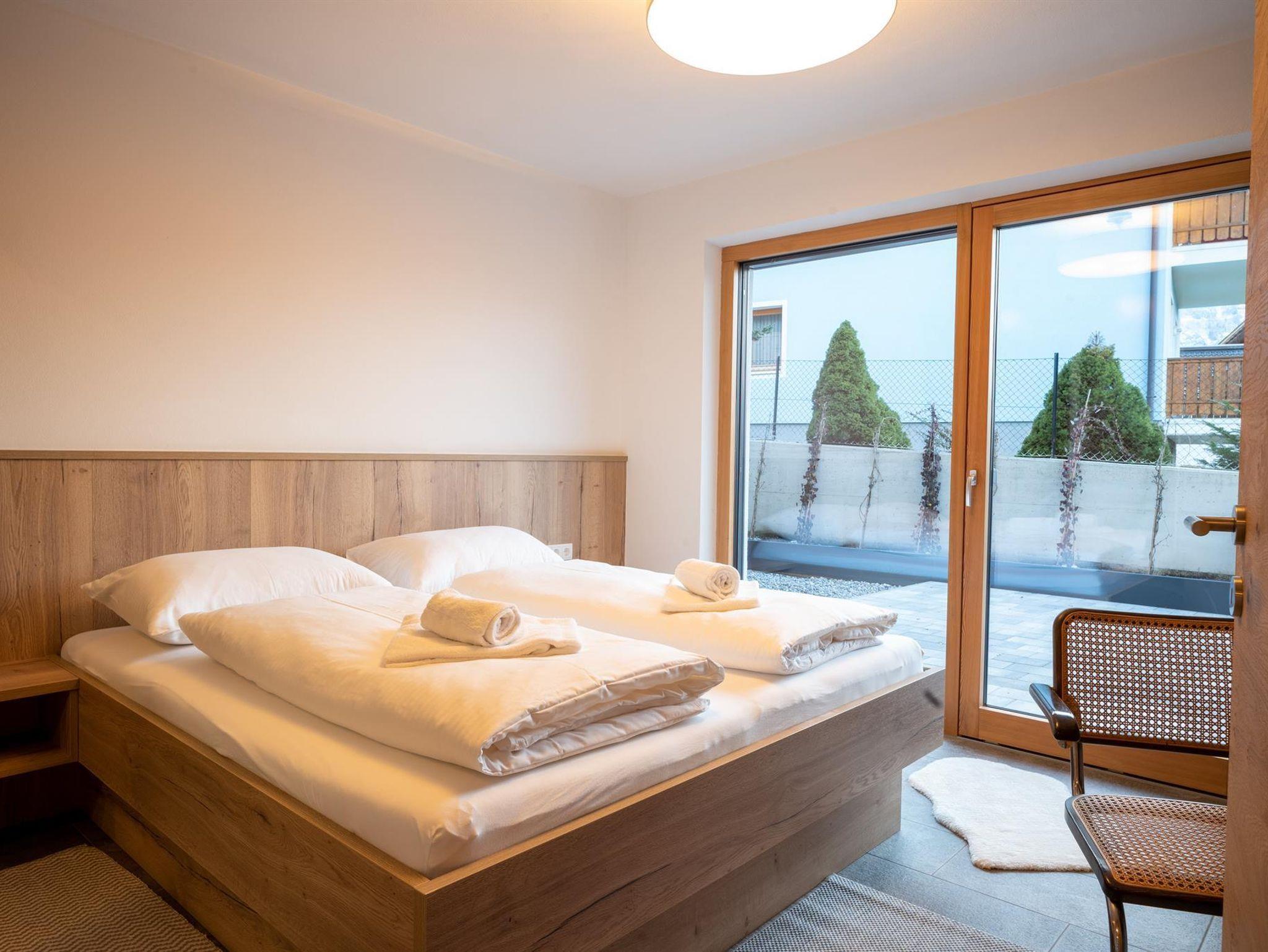 Auf 250m² finden sich 4 Schlafzimmer, insgesamt 3 Badezimmer, sowie eine großer Wohnbereich mit angrenzender Terrasse, die Sommer wie Winter zum Verweilen einlädt. Im Elternzimmer, welches mit gemütlichen Holz eingerichtet ist, befindet sich je ein großes Kingsize-Doppelbett. Das Kinderzimmer ist mit zwei Einzelbetten ausgestattet. Ebenerdig gibt es direkten Zugang zum Garten, mit Grillstelle und Sitzgelegenheit für laue Sommerabende. Das Highlight ist der private Wellnessbereich mit Sauna und einem weiteren Badezimmer!