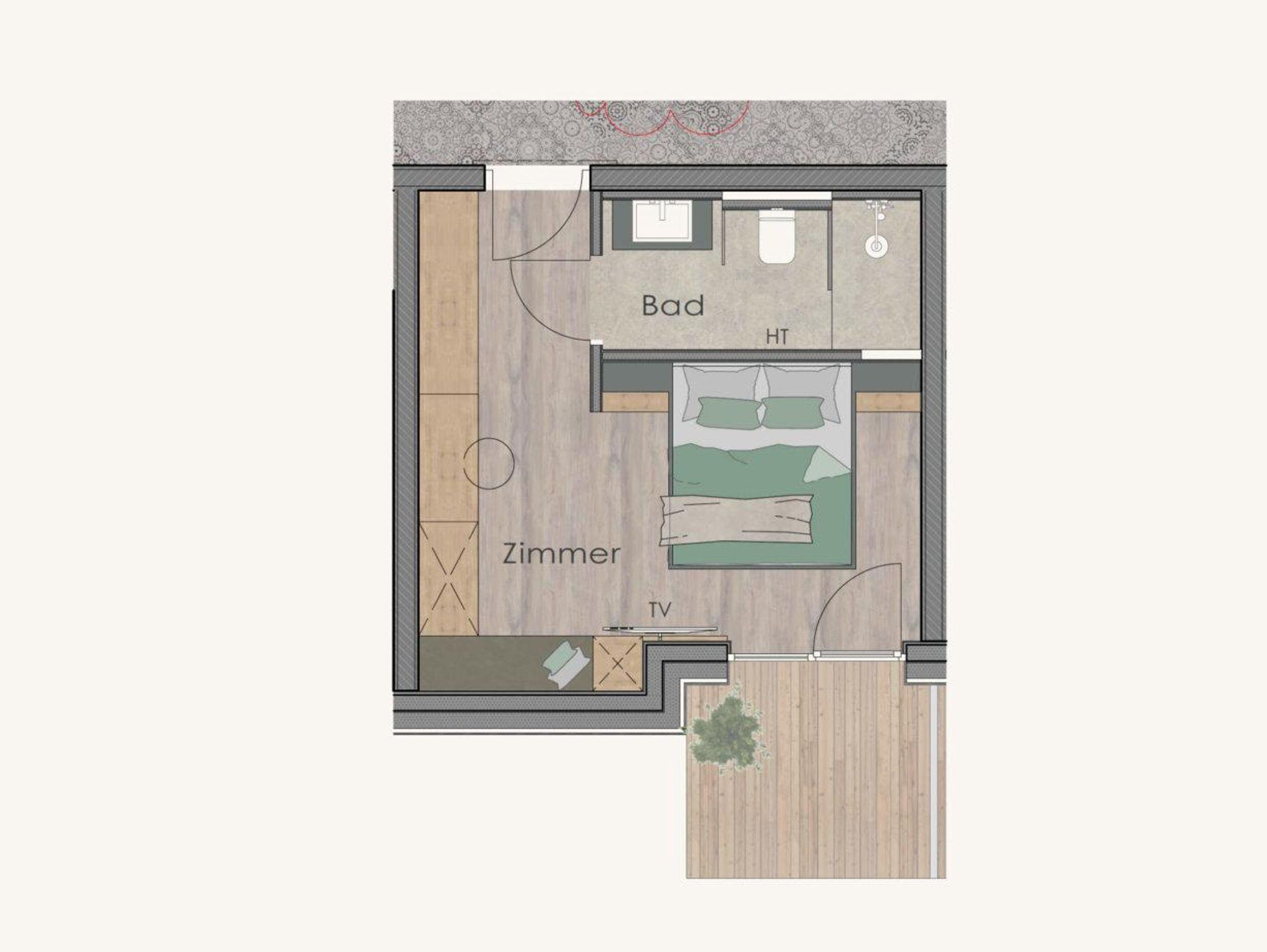 • Sitzbank, Schreibtisch, Flat-TV