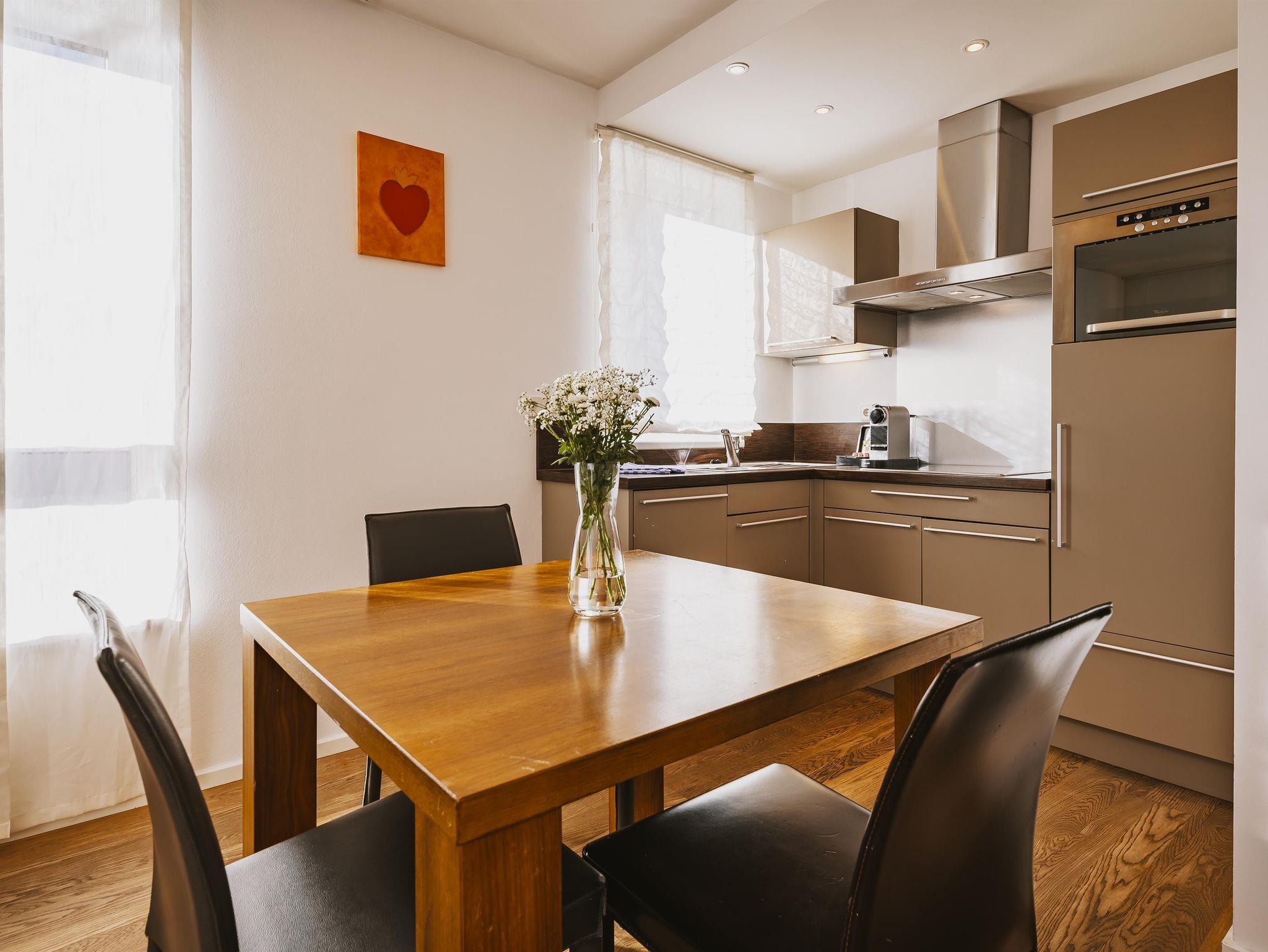 Das Appartement bietet Platz für 2-3 Personen. Es gibt ein Schlafzimmer mit Doppelbett, sowie eine gemütliche Schlafcouch im Wohnraum. Das Bad ist ausgestattet mit einer Badewanne, einer Toilette und einem Handtuchtrockner. Der helle Wohnraum mit voll ausgestatteter Küche, einem Essbereich und der Sitzecke mit TV, bieten alles, was man im Urlaub braucht. Auf dem Balkon genießt man die schöne Aussicht auf die Kapruner Bergwelt.