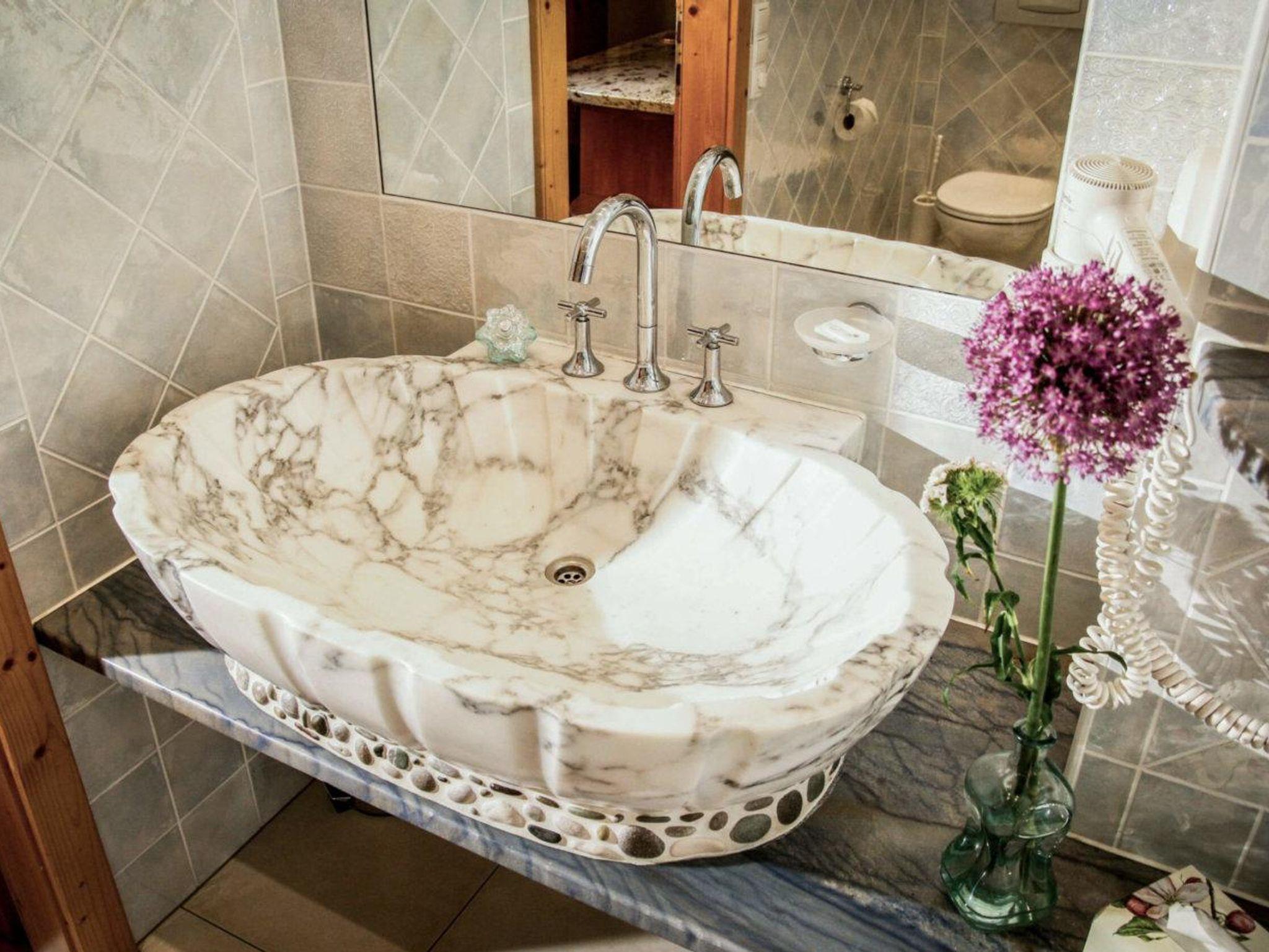 • 1 Badezimmer mit Badewanne, Dusche, WC und Haarföhn