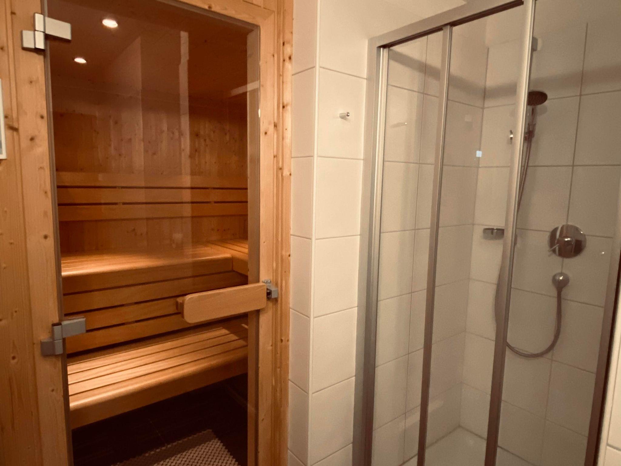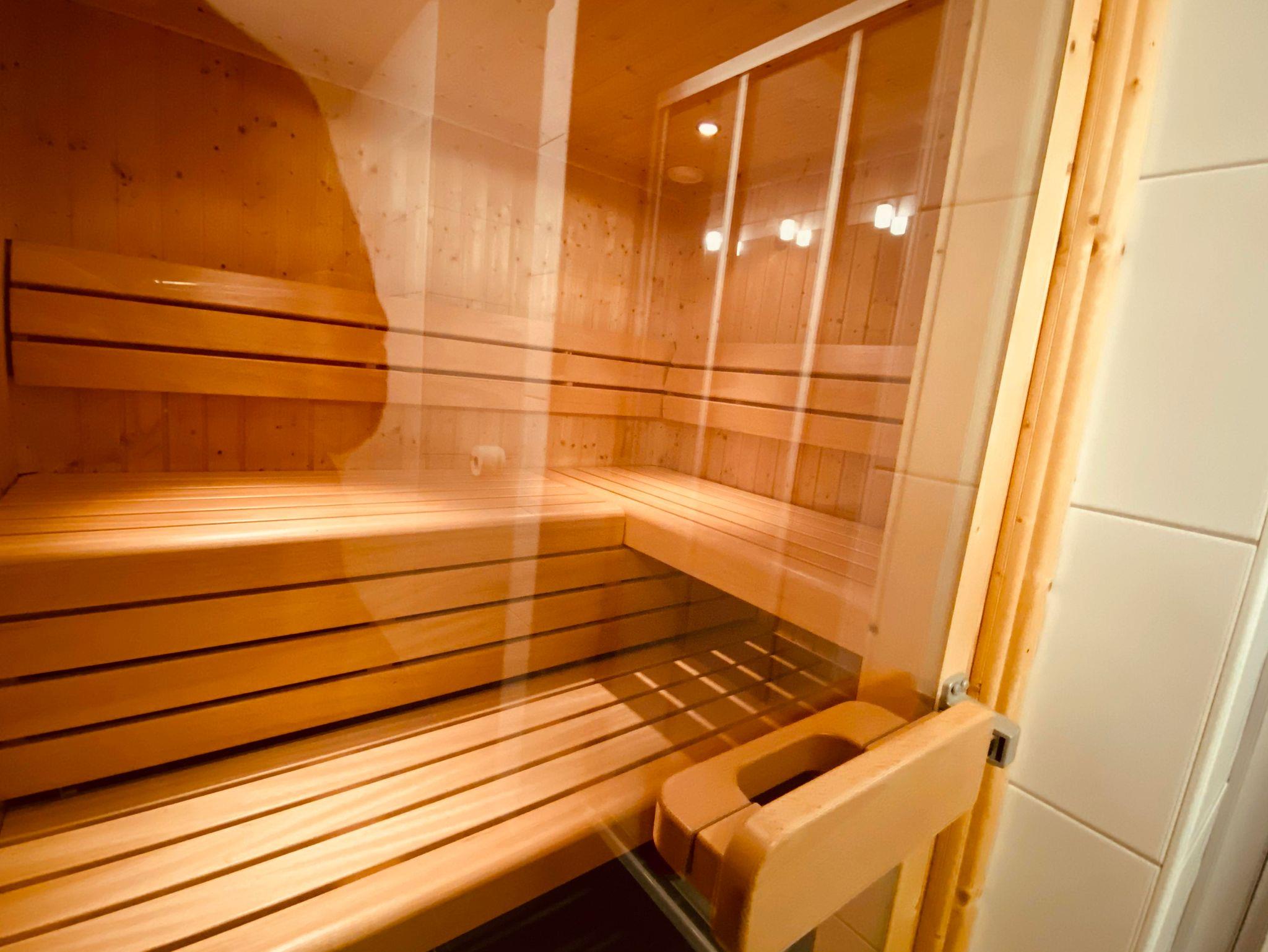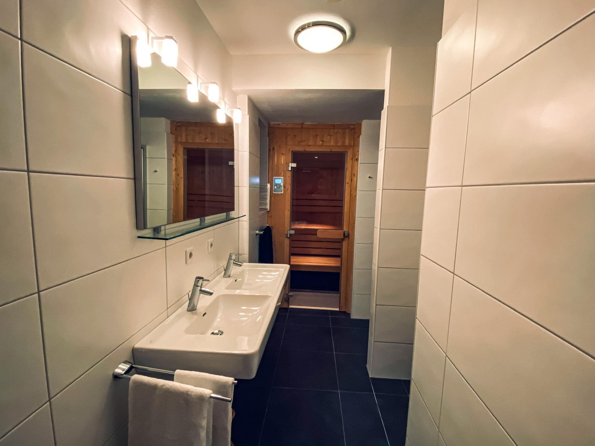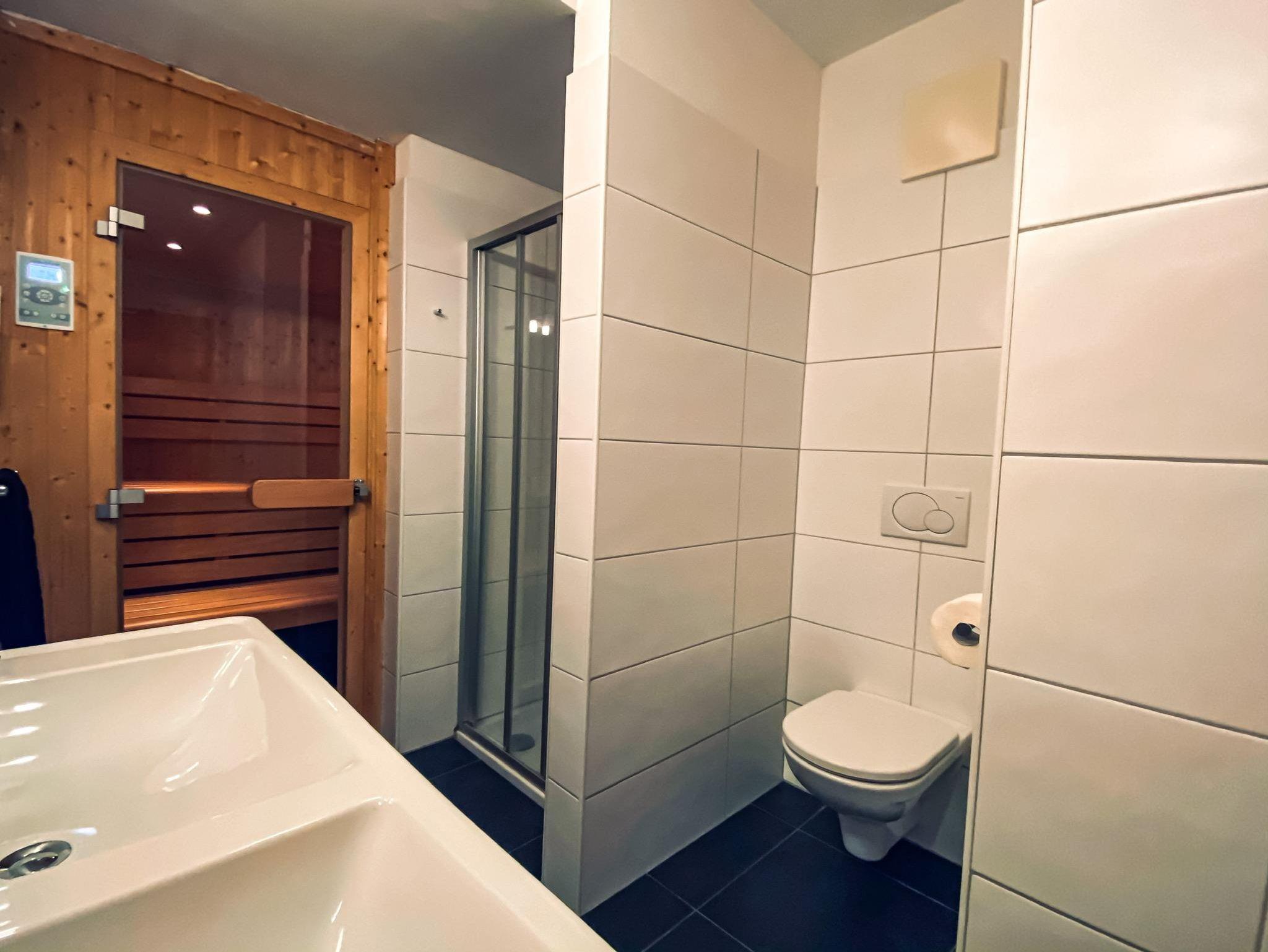 4 Schlafzimmer mit Doppelbetten und Sony LCD Fernseher, ein Hochbett und eine Schlafcouch mit Matratze, 2 Badezimmer mit Toiletten und 1 separate Toilette, IR-Sauna