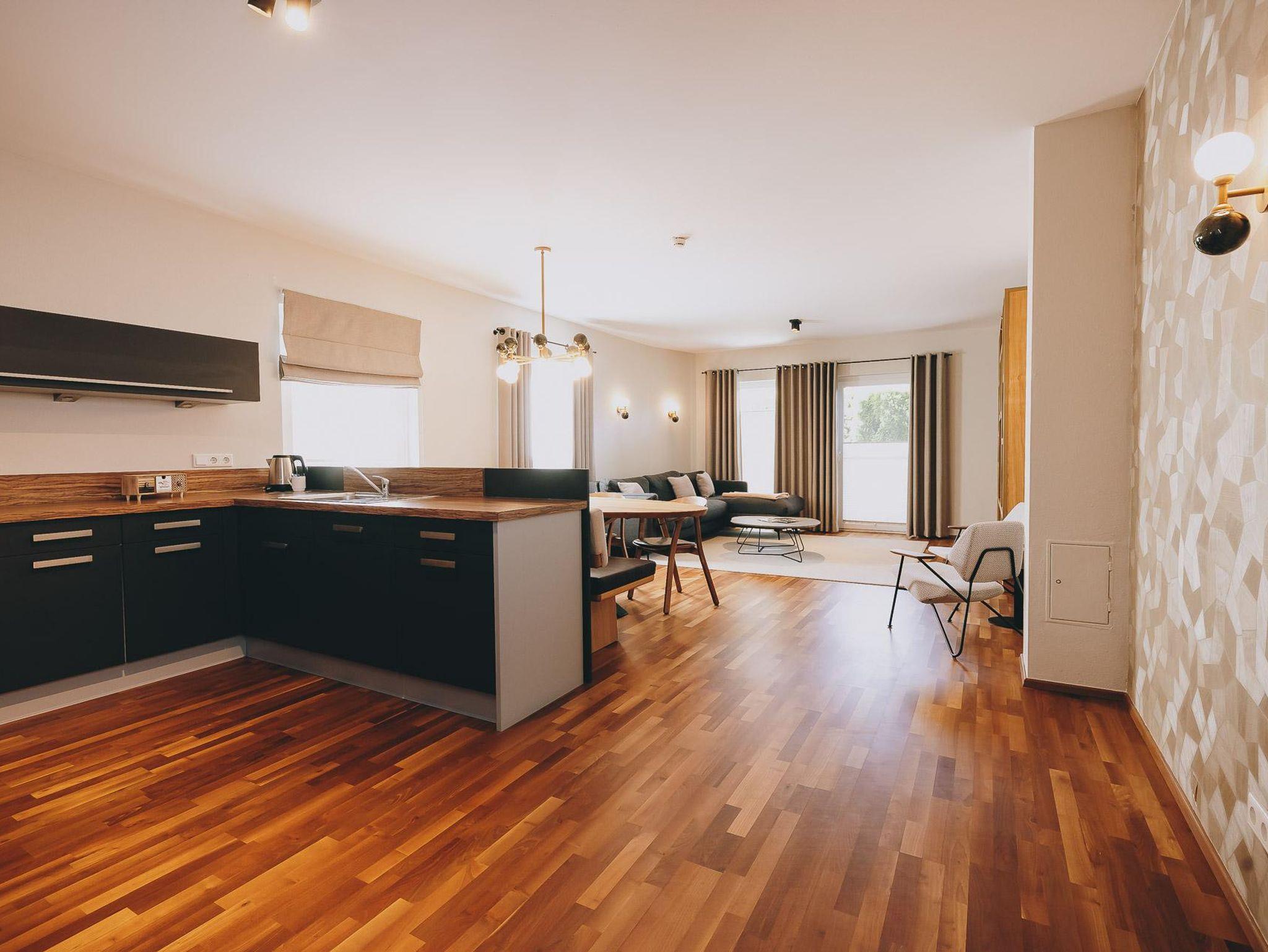 Zwei komplett getrennte Schlafzimmer, ein Masterbedroom , ein „White Room“ mit riesigem Panoramafenster und eine „Knautsch Couch“ für Familienabende stehen auf 77qm zur Verfügung!