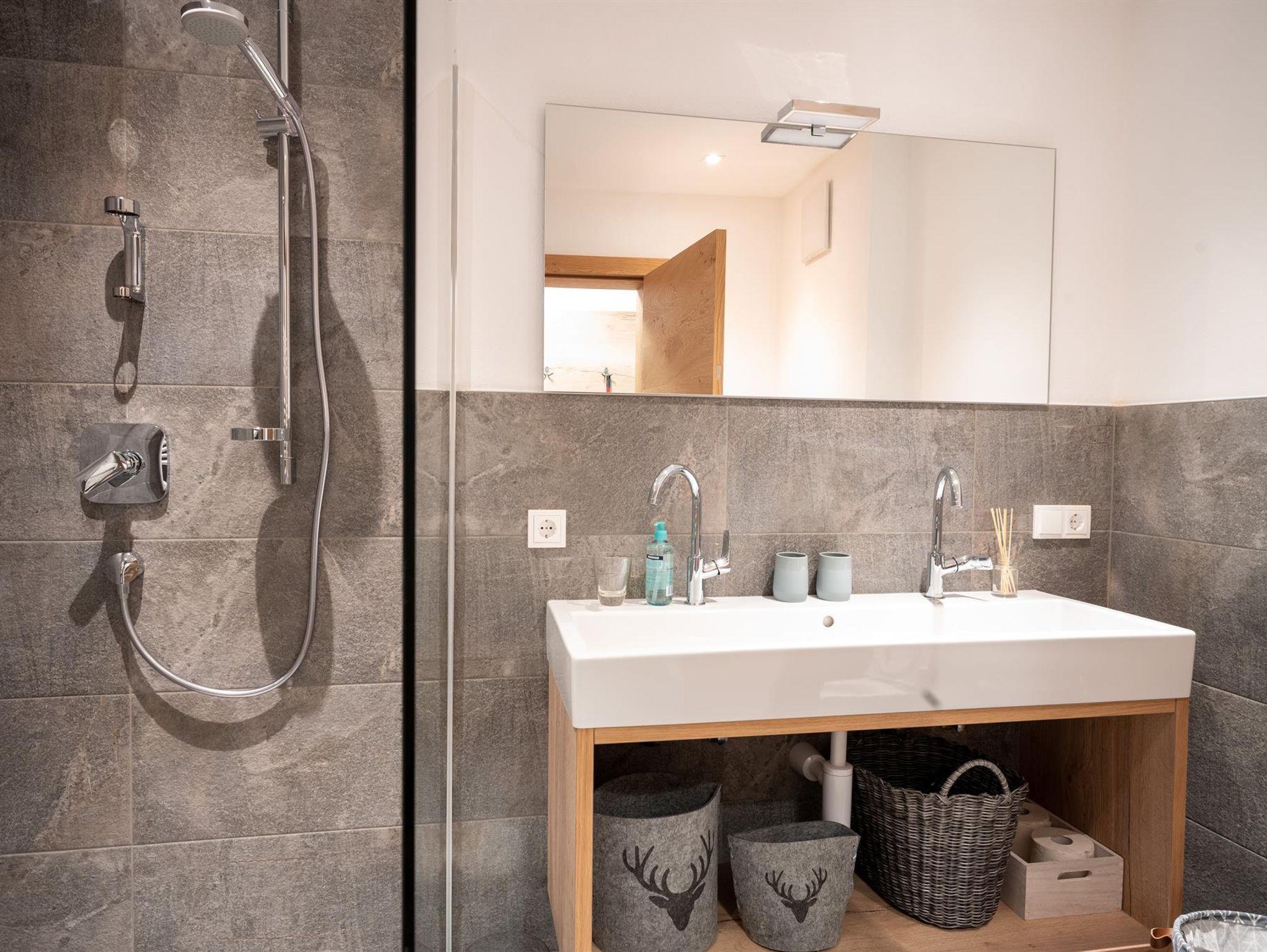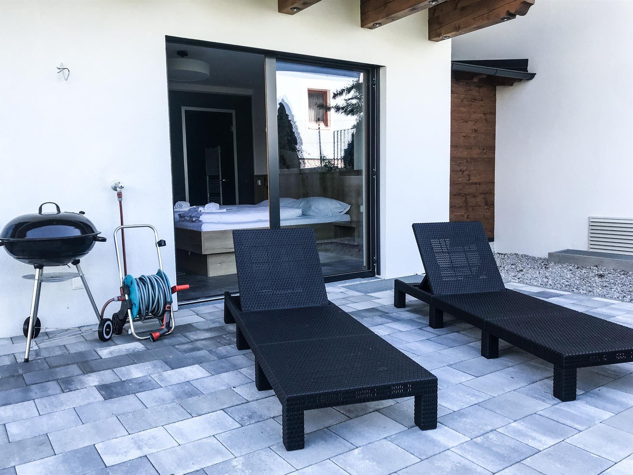 Auf 250m² finden sich 4 Schlafzimmer, insgesamt 3 Badezimmer, sowie eine großer Wohnbereich mit angrenzender Terrasse, die Sommer wie Winter zum Verweilen einlädt. Im Elternzimmer, welches mit gemütlichen Holz eingerichtet ist, befindet sich je ein großes Kingsize-Doppelbett. Das Kinderzimmer ist mit zwei Einzelbetten ausgestattet. Ebenerdig gibt es direkten Zugang zum Garten, mit Grillstelle und Sitzgelegenheit für laue Sommerabende. Das Highlight ist der private Wellnessbereich mit Sauna und einem weiteren Badezimmer!