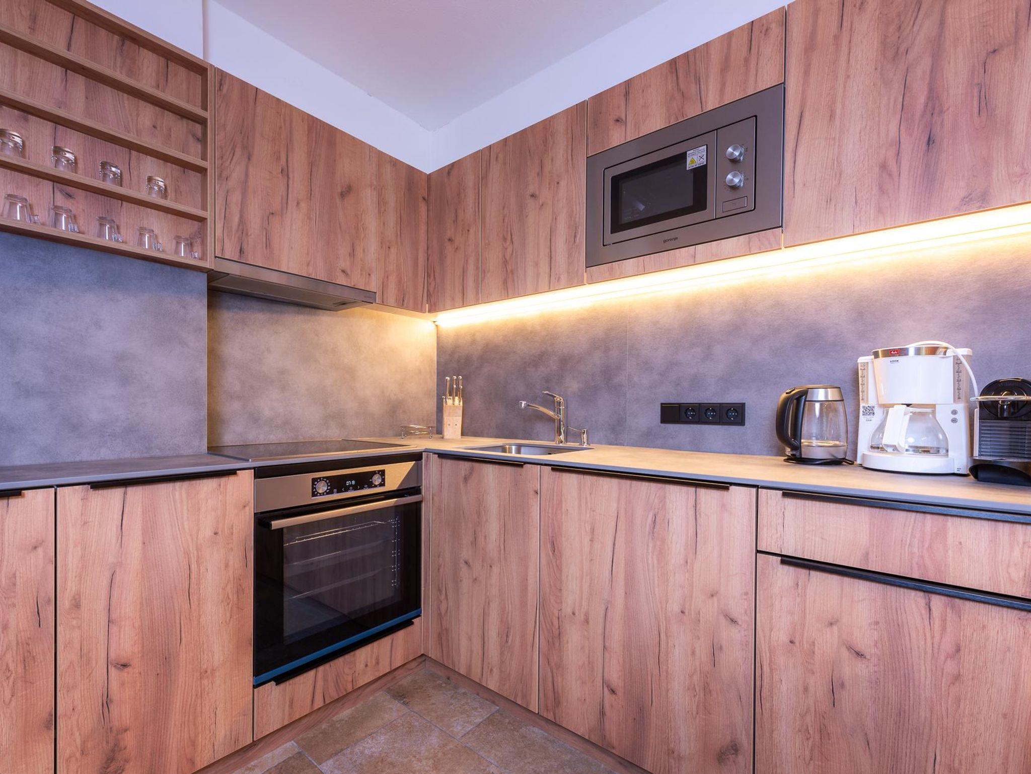 • Großer Wohn- und Essbereich mit sehr gut ausgestatteter Küche (Geschirrspüler, Nespresso Kaffeemaschine, Filterkaffeemaschine, Herd mit Ceran Kochfeld und Backofen, Wasserkocher, Mikrowelle)