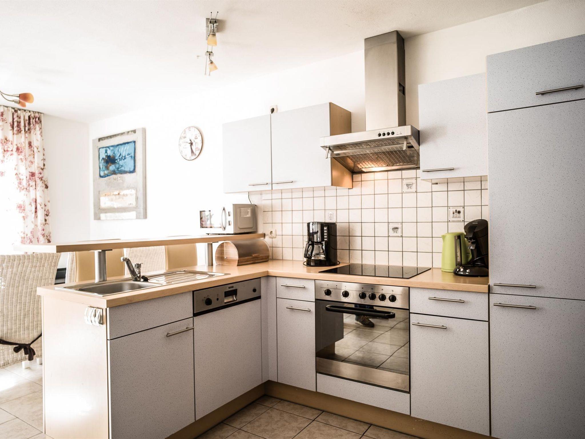 Unsere Küche bietet alles, was du zum Verwöhnen deiner Liebsten benötigst: Ein Kochfeld mit 4 Kochstellen, eine Kühl-Gefrierkombination, eine Mikrowelle, ein Backofen, eine Spülmaschine, sowie Geschirr/Besteck und Kochutensilien mit einer Kaffeemaschine, einen Toaster und einem Wasserkocher. Die Unterkunft verfügt weiter über eine allgemeine Waschmaschine, sowie ein Bügeleisen/-brett.