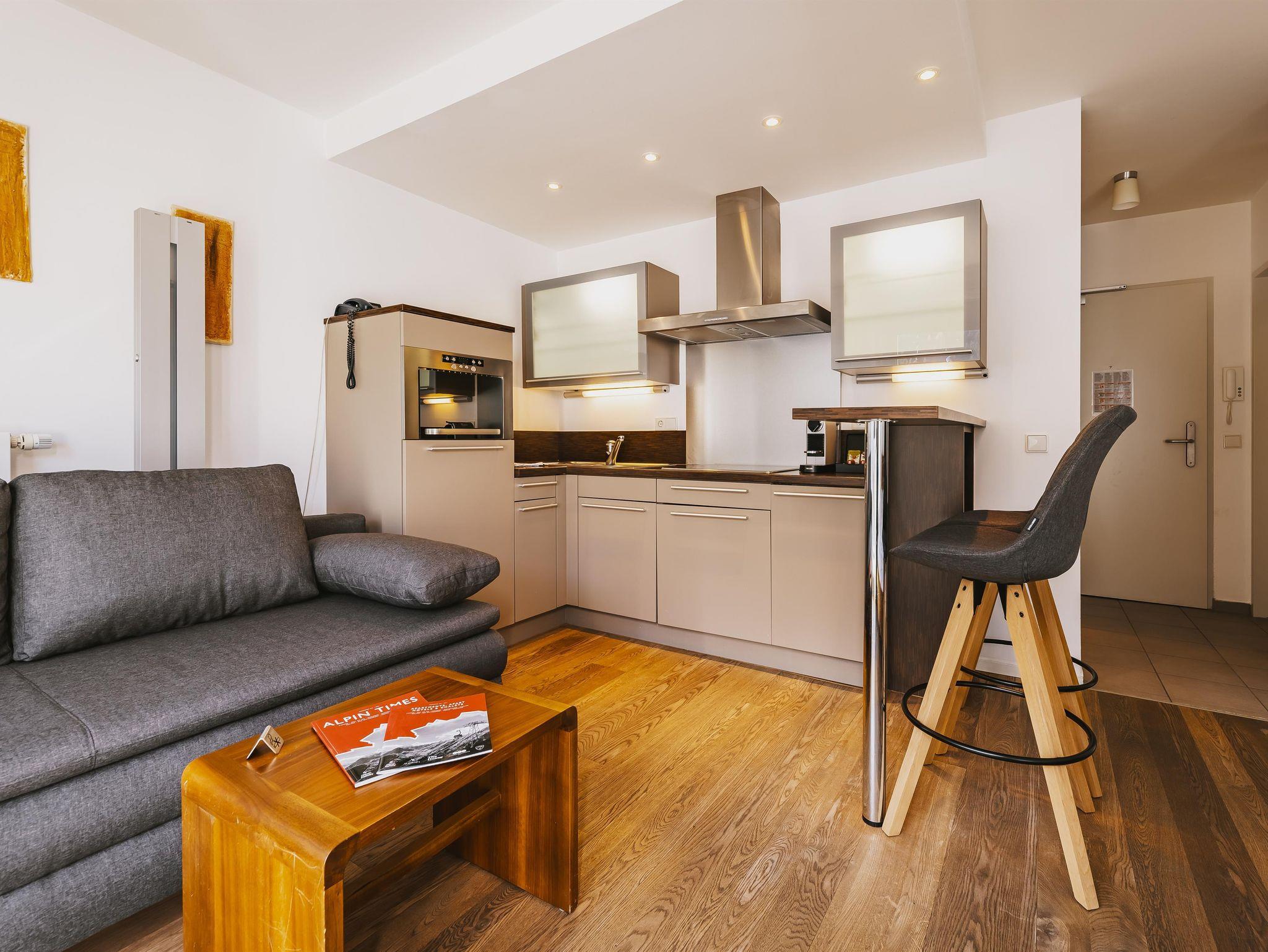 Das kleine aber feine Studio Appartement mit einem Wohnschlafraum mit einem Doppelbett bietet Platz für 2-3 Personen. Die gemütliche Sitzecke mit Schlafcouch und TV, sowie eine voll ausgestattete kleine Küche mit einer kleinen Bar als Essbereich bietet alles was man im Urlaub braucht. Das Badezimmer ist mit einer Dusche, Toilette und einem Handtuchtrockner ausgestattet. Am Balkon wartet ein einzigartiger Panoramablick auf das Kitzsteinhorn.