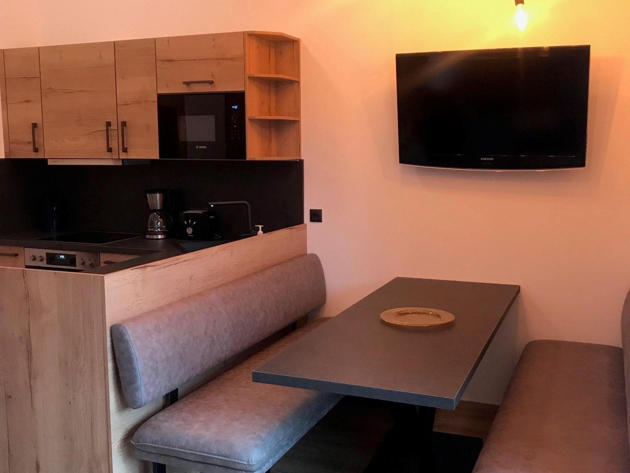 2 Schlafzimmer + 1 Sofabett, voll ausgestattete Kochnische mit Sitzecke,
