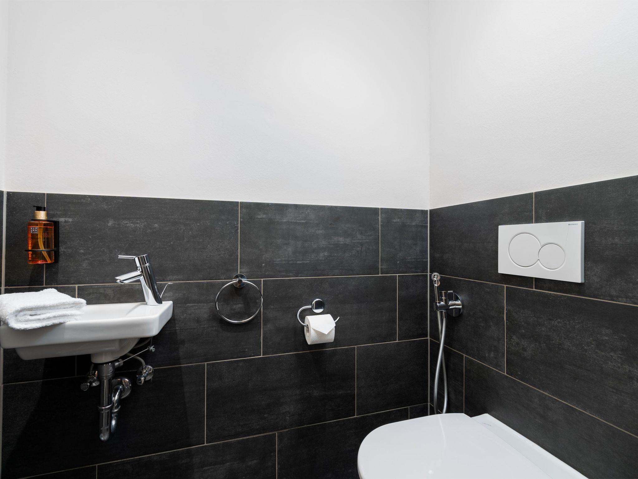 Im Penthouse im obersten Stock ist genug Platz für bis zu acht Personen. Es erwarten Sie drei moderne Schlafzimmer mit Doppelbetten und drei Badezimmer mit Dusche und WC. Eine Schlafcouch, ein gemütlicher Esstisch und eine voll ausgestattete moderne Küche befinden sich im großen Wohnbereich, der das Herzstück des Penthouses ist. Eine private Sauna sorgt dafür, dass Entspannung in Ihrem Urlaub nicht zu kurz kommt. Den privaten Balkon mit weiteren Sitzmöglichkeiten können Sie direkt vom Wohnbereich aus betreten. Er ist der perfekte Ort, um die Sonne zu genießen.