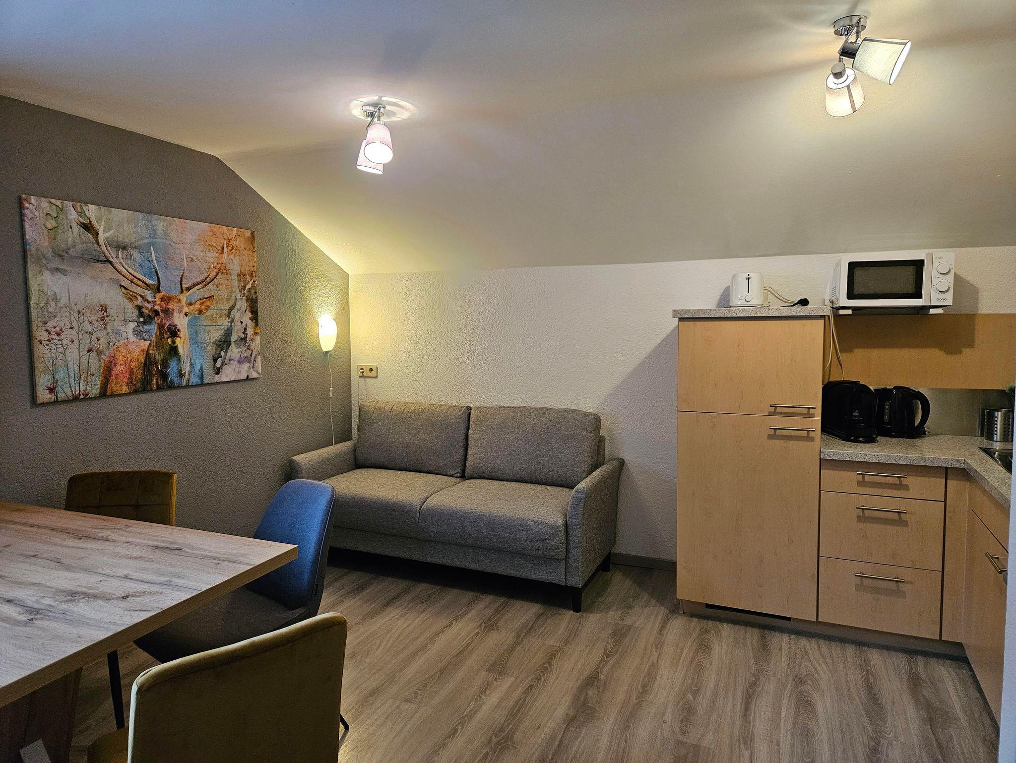 • Ausstattung je nach Appartement mit Backofen, Mikrowelle, Kaffeemaschine, Wasserkocher und Toaster