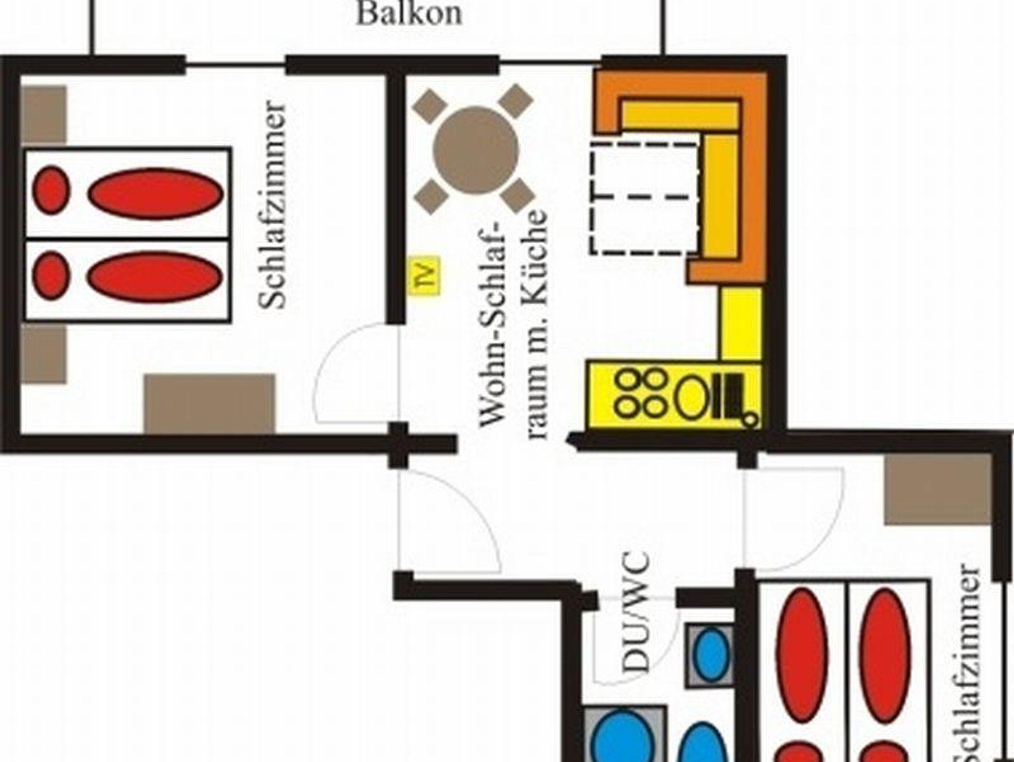 • Wohn-/Schlafräume mit Küchenblock oder separater Küche und Essbereich