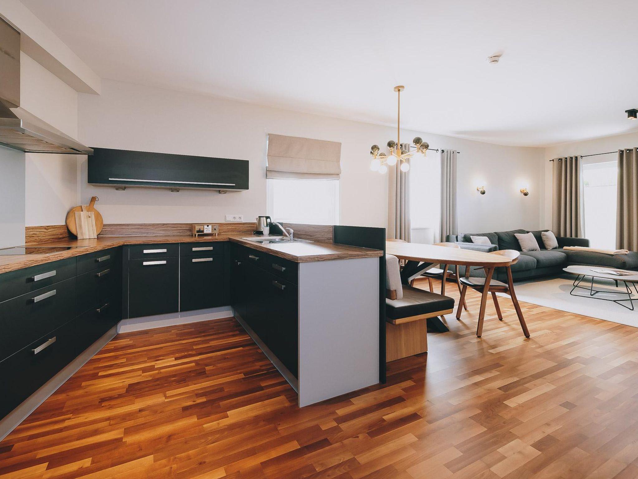 Zwei komplett getrennte Schlafzimmer, ein Masterbedroom , ein „White Room“ mit riesigem Panoramafenster und eine „Knautsch Couch“ für Familienabende stehen auf 77qm zur Verfügung!