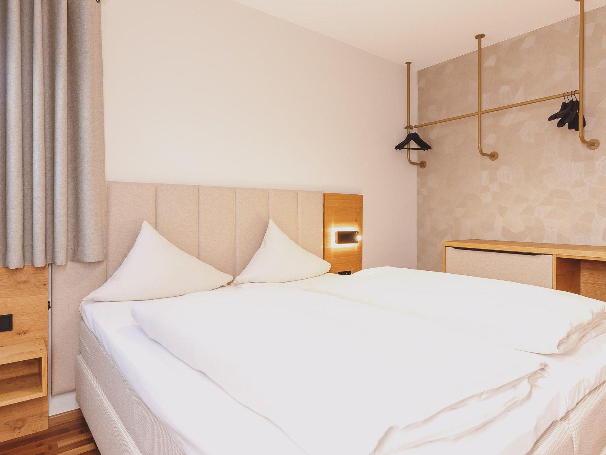Vom Bett aus schon auf den Bergen. Wie das geht? Ganz einfach in unseren „kleinen“ aber feinen Suiten mit extra großem Doppelbett erwartet Sie ein atemberaubender Blick auf die Berge. Sie verbringen Ihren Urlaub auf 55qm reiner Behaglichkeit.