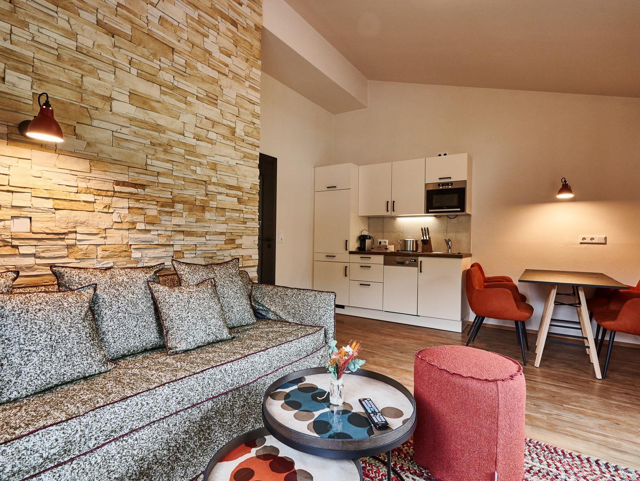 Wir haben die Wohnung in je ein Schlaf- bzw. Wohnzimmer eingeteilt und bieten Platz für bis zu 4 Personen. Ebenfalls haben wir für unsere Gäste ein modernes Badezimmer mit ebenerdiger Dusche eingerichtet. Die Unterkunft verfügt weiter über eine allgemeine Waschmaschine, sowie ein Bügeleisen/-brett. Vor dem Haus findet ihr kostenfreie Parkplätze und natürlich bieten wir kostenfreies W-Lan im gesamten Apartment.