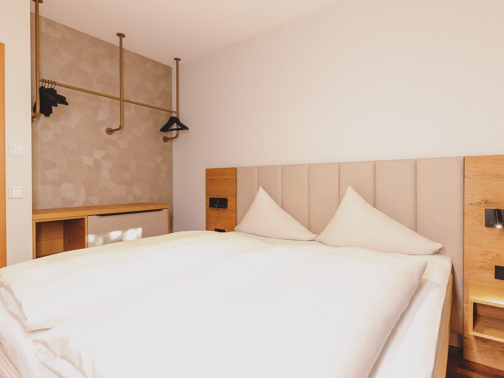 Vom Bett aus schon auf den Bergen. Wie das geht? Ganz einfach in unseren „kleinen“ aber feinen Suiten mit extra großem Doppelbett erwartet Sie ein atemberaubender Blick auf die Berge. Sie verbringen Ihren Urlaub auf 55qm reiner Behaglichkeit.