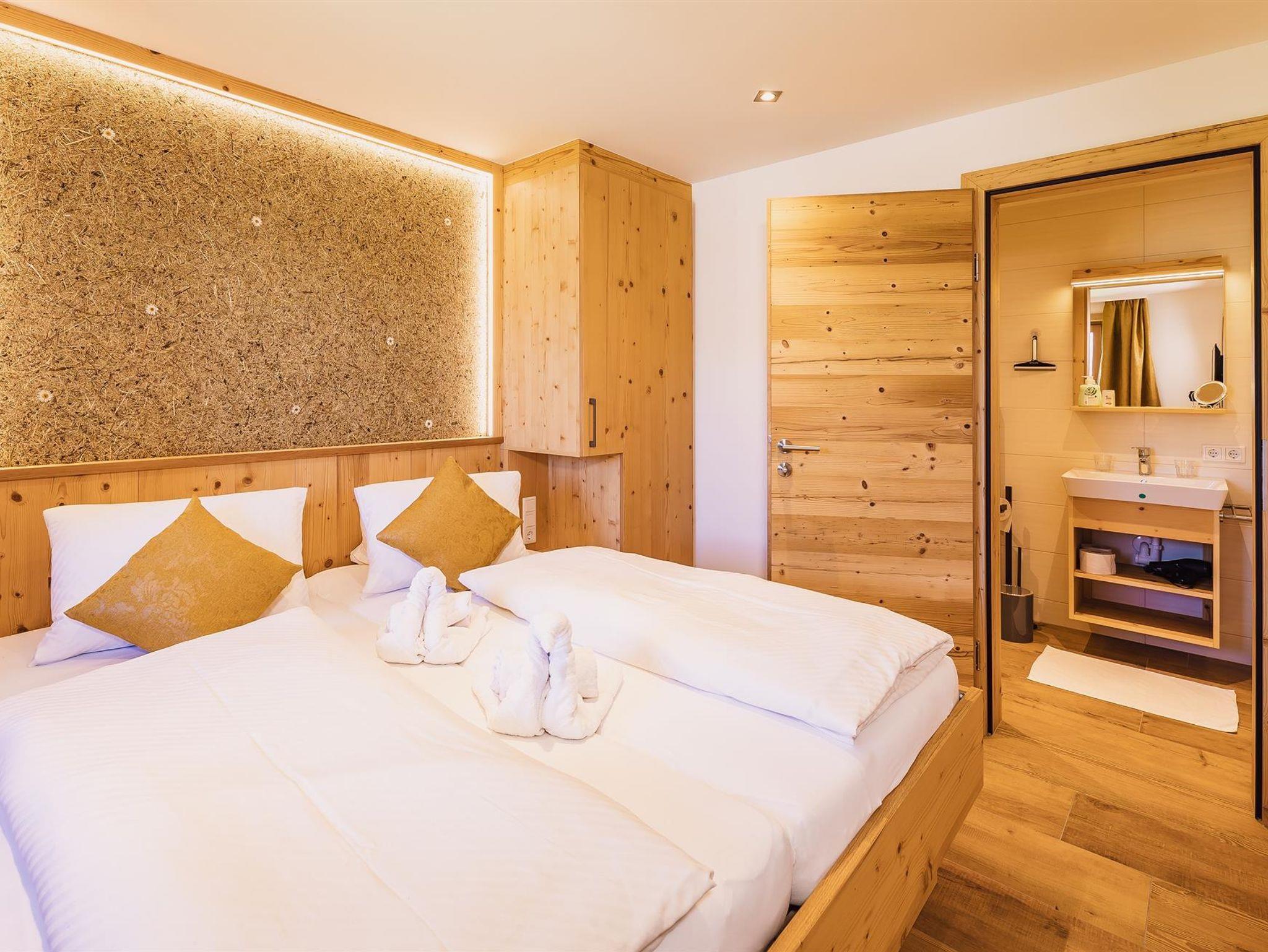 • gemütlichen Zimmern & Appartements mit Heuwänden und mit regionalen, natürlichen Materialien