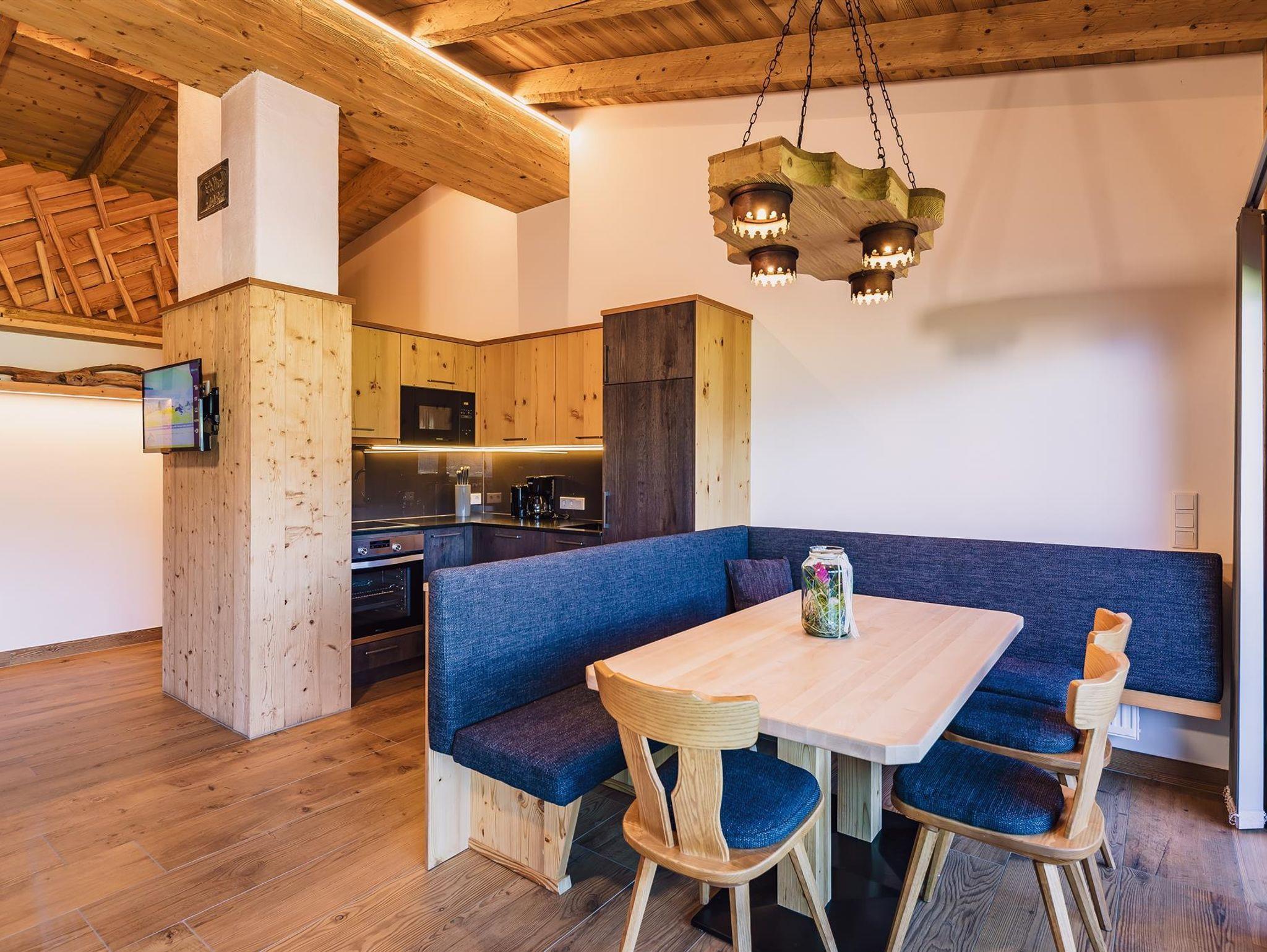 Das lichtdurchflutete Appartement bietet ein ganz neues Wohngefühl mit natürlichen Materialien, wie eine Heu-Tapete aus reinen, natürlichen Stoffen aus dem Pinzgau.