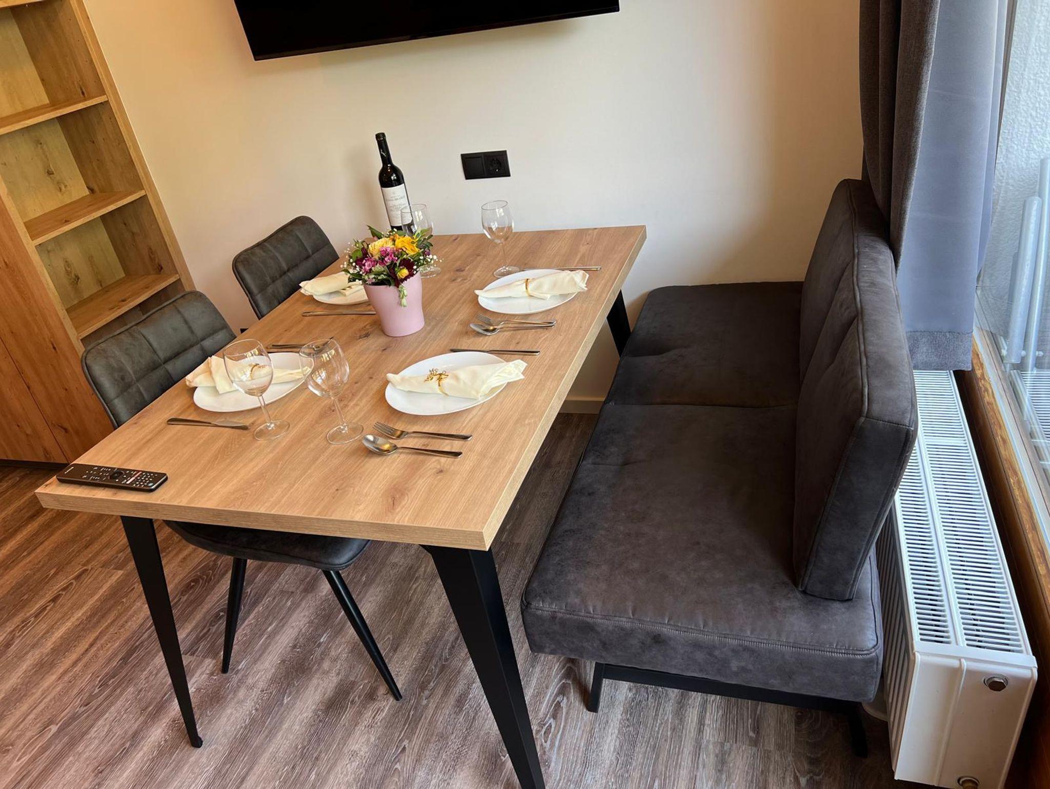 • Appartement mit moderner Küchenzeile mit Backofen und Mikrowelle